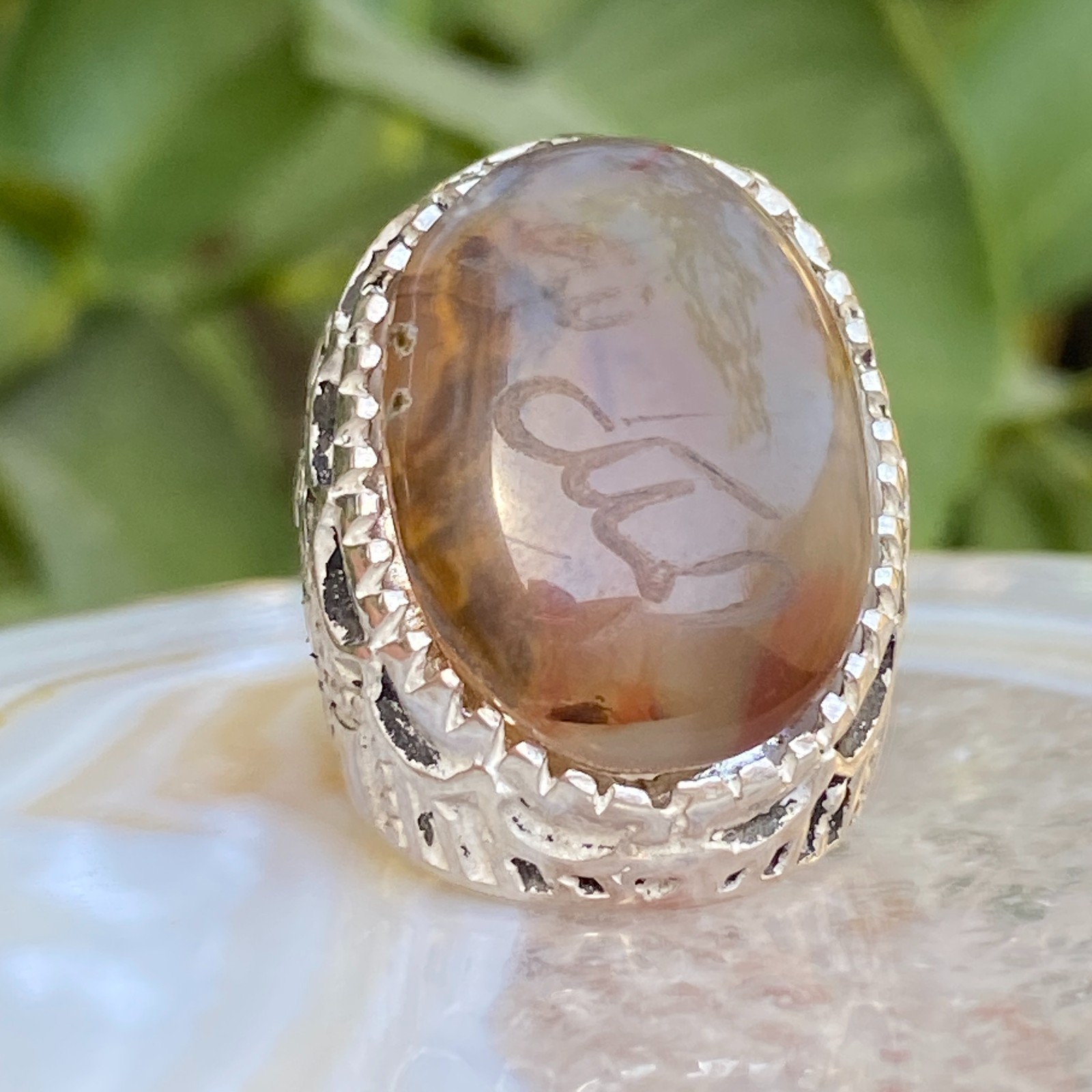 как выглядит islamic 925 Sterling Silver men ring natural yemeni aqeeq agate фото