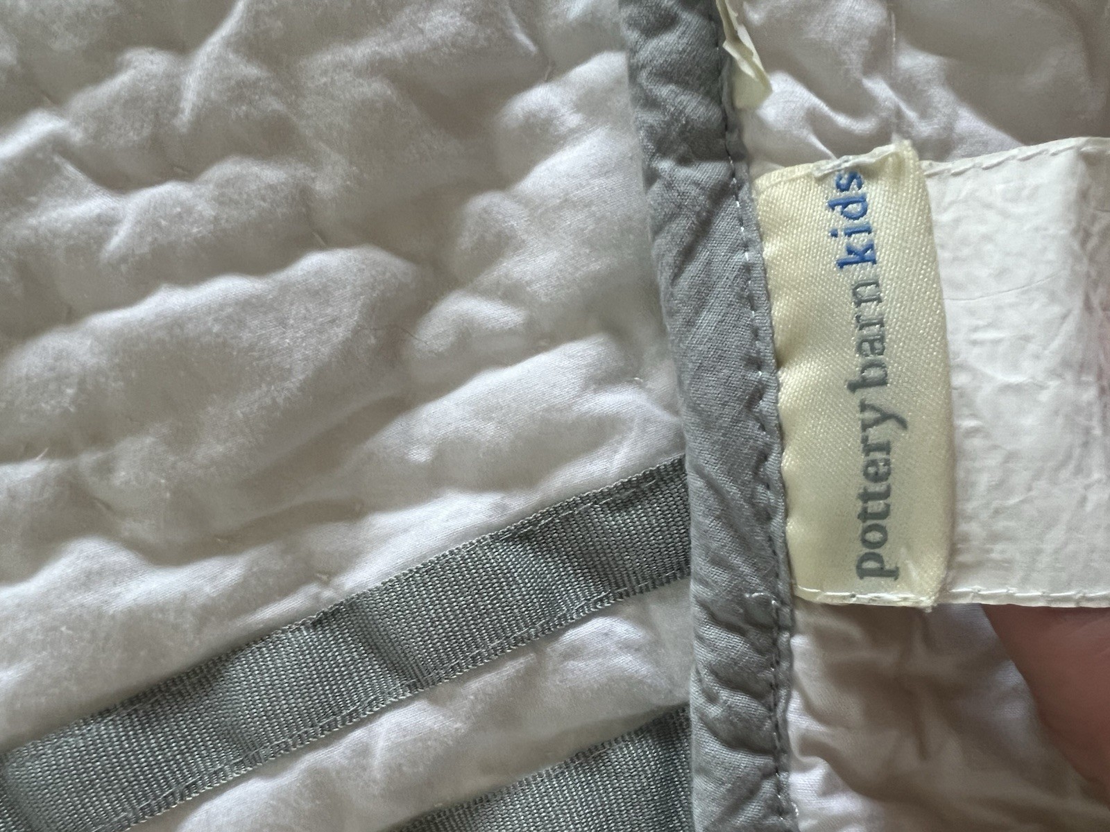 как выглядит Pottery Barn Kids Crib Toddler Bed Quilt Harper White Blue Nursery VG Condition фото