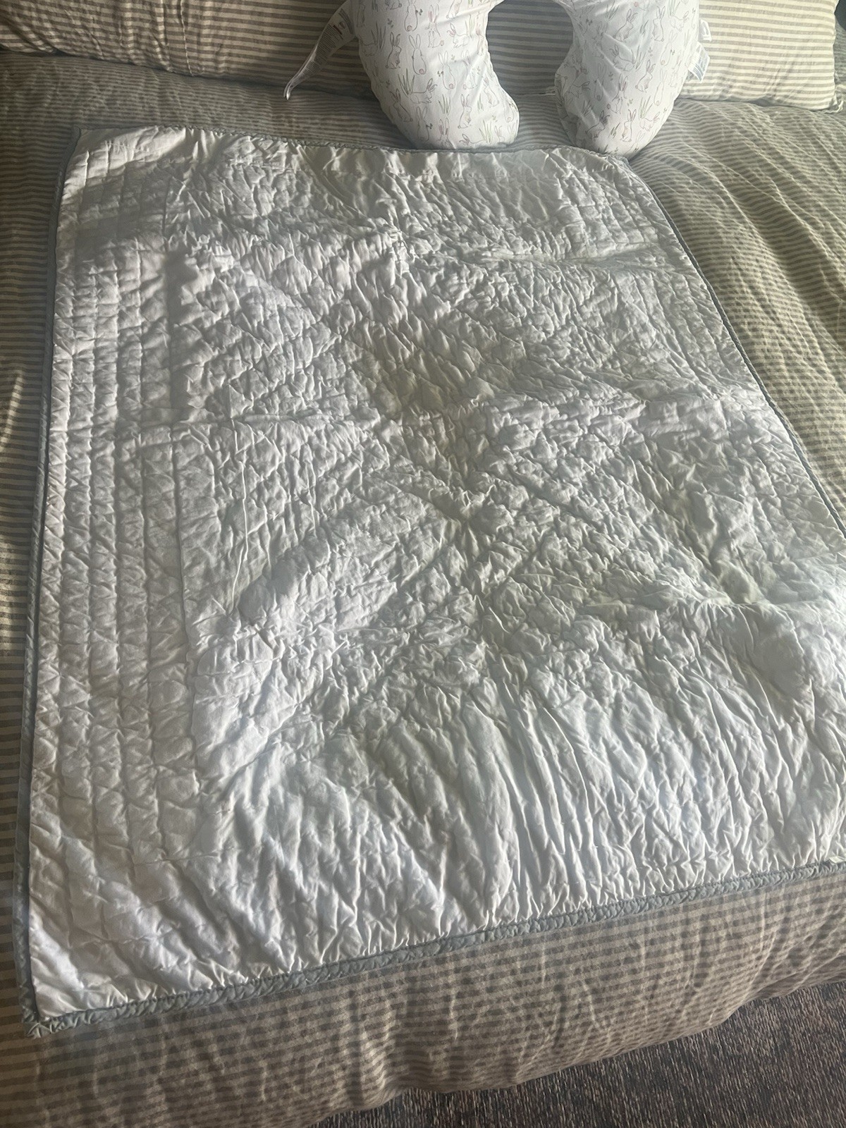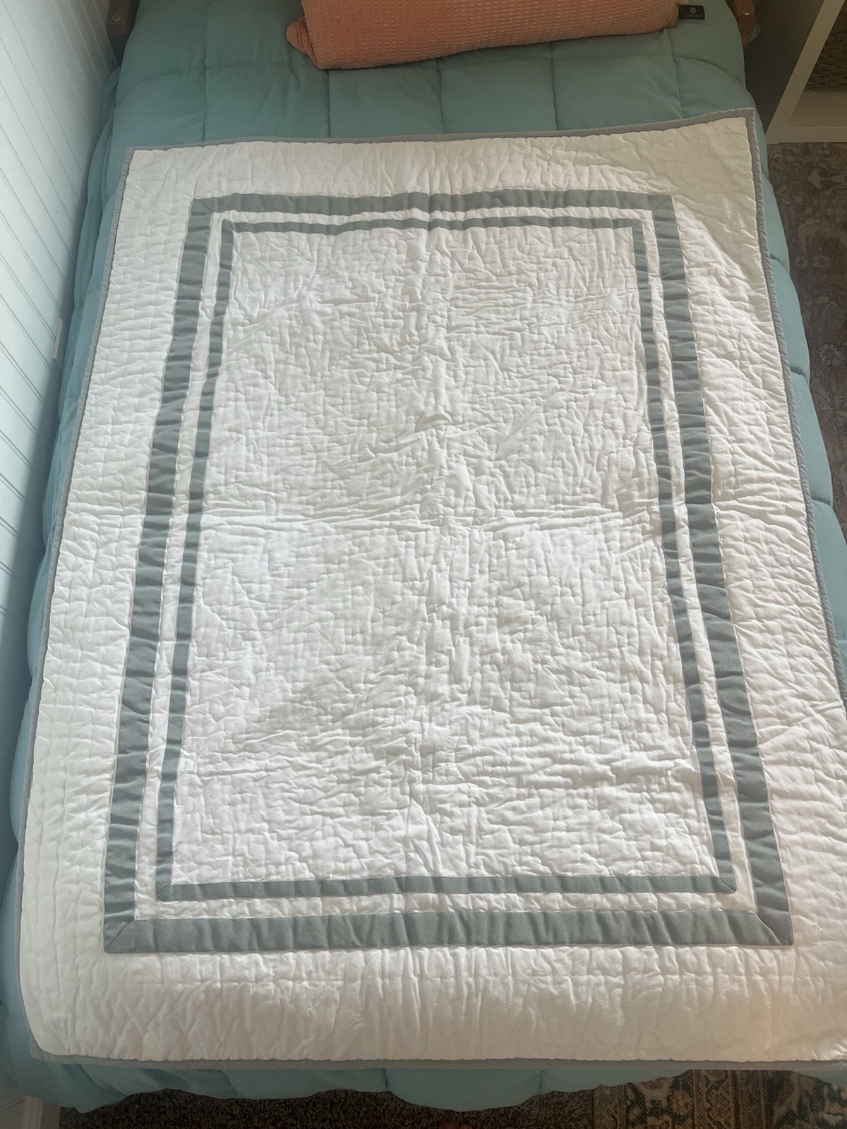 Pottery Barn Kids Crib Toddler Bed Quilt Harper White Blue Nursery VG Condition