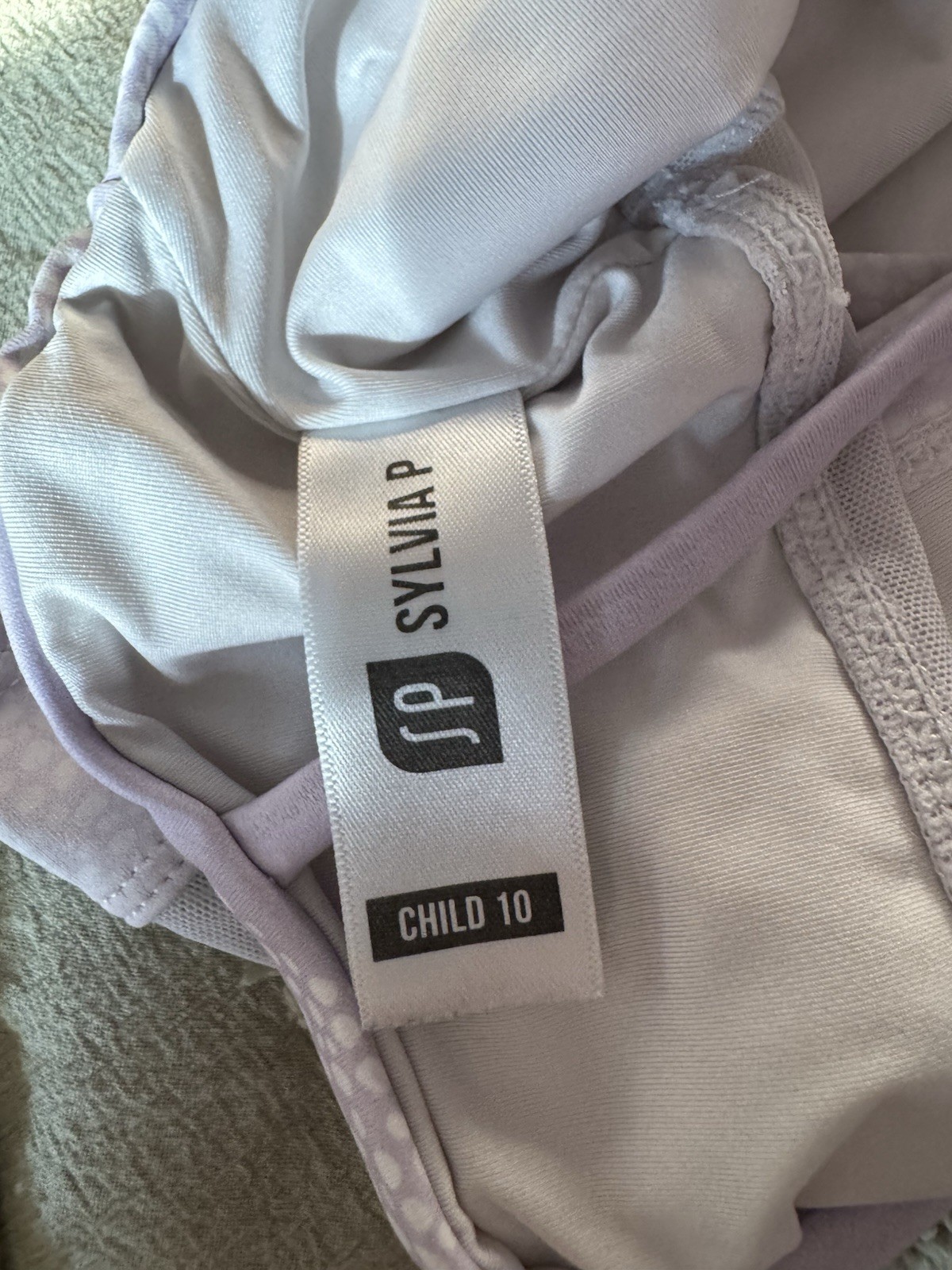 как выглядит SYLVIA P crop top Size 10 GYMNASTICS DANCE under leotard FUN BACK lilac white фото