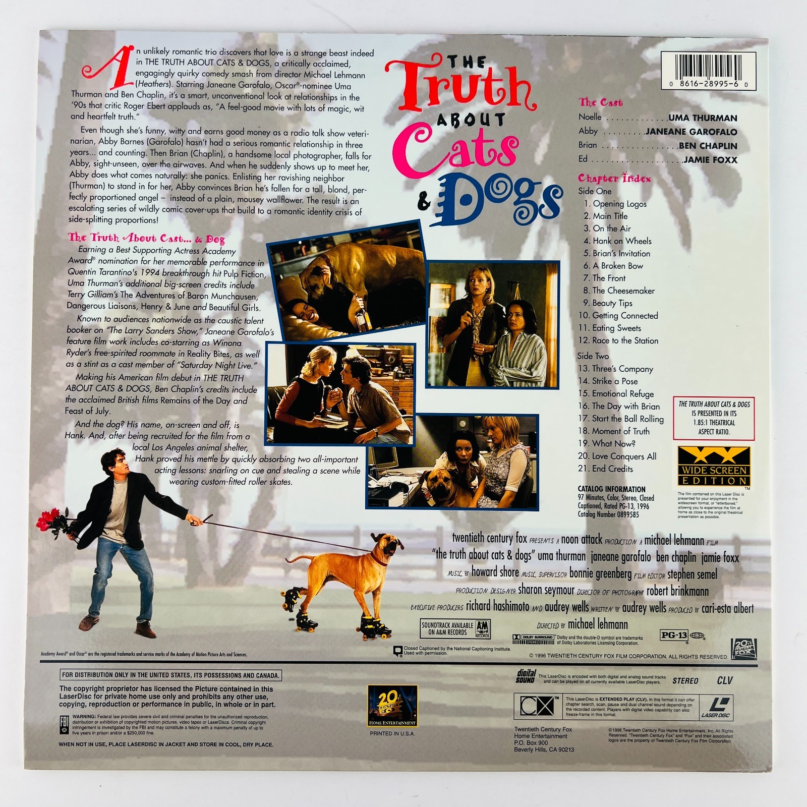 The Truth About Cats Dogs Laserdisc 1996 0899585 Uma Thurman, Janeane Garofa
