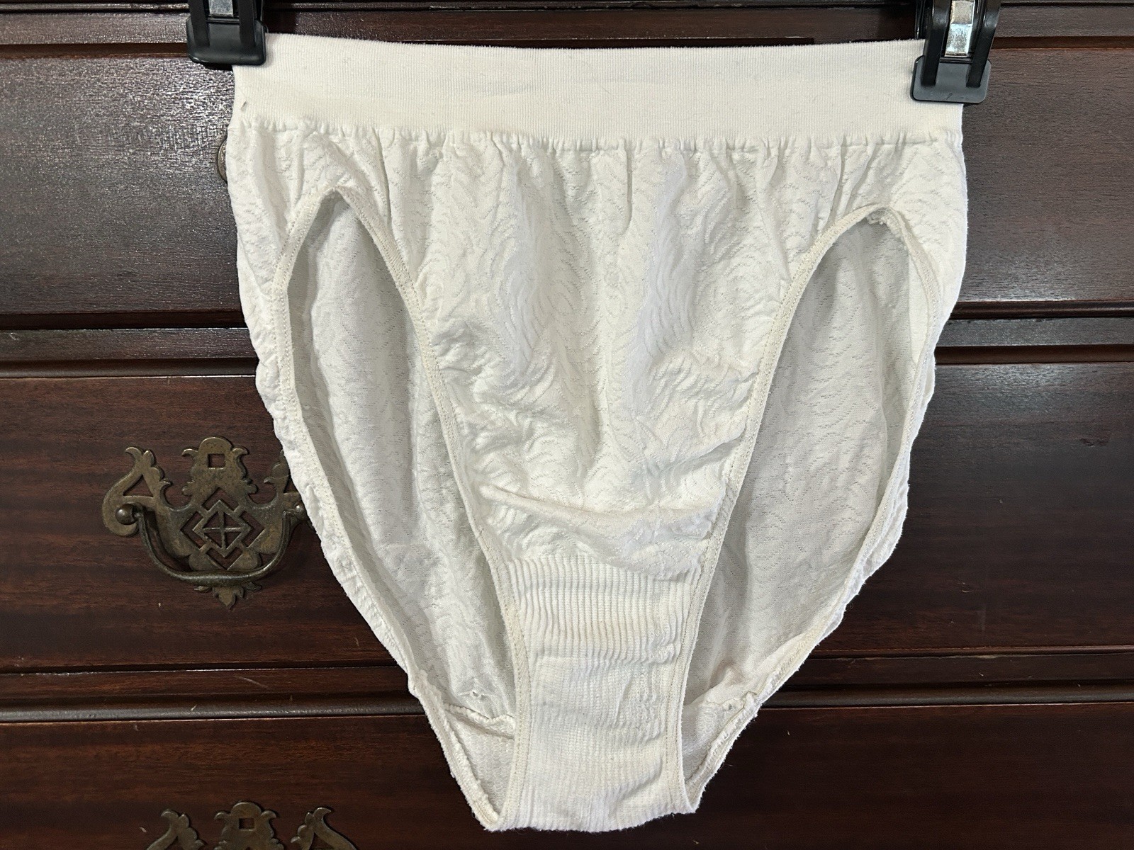 как выглядит Vtg BALI 2503 Patterned Wide Waistband Hi-Cut Sz 8/9 White Panties 398 фото