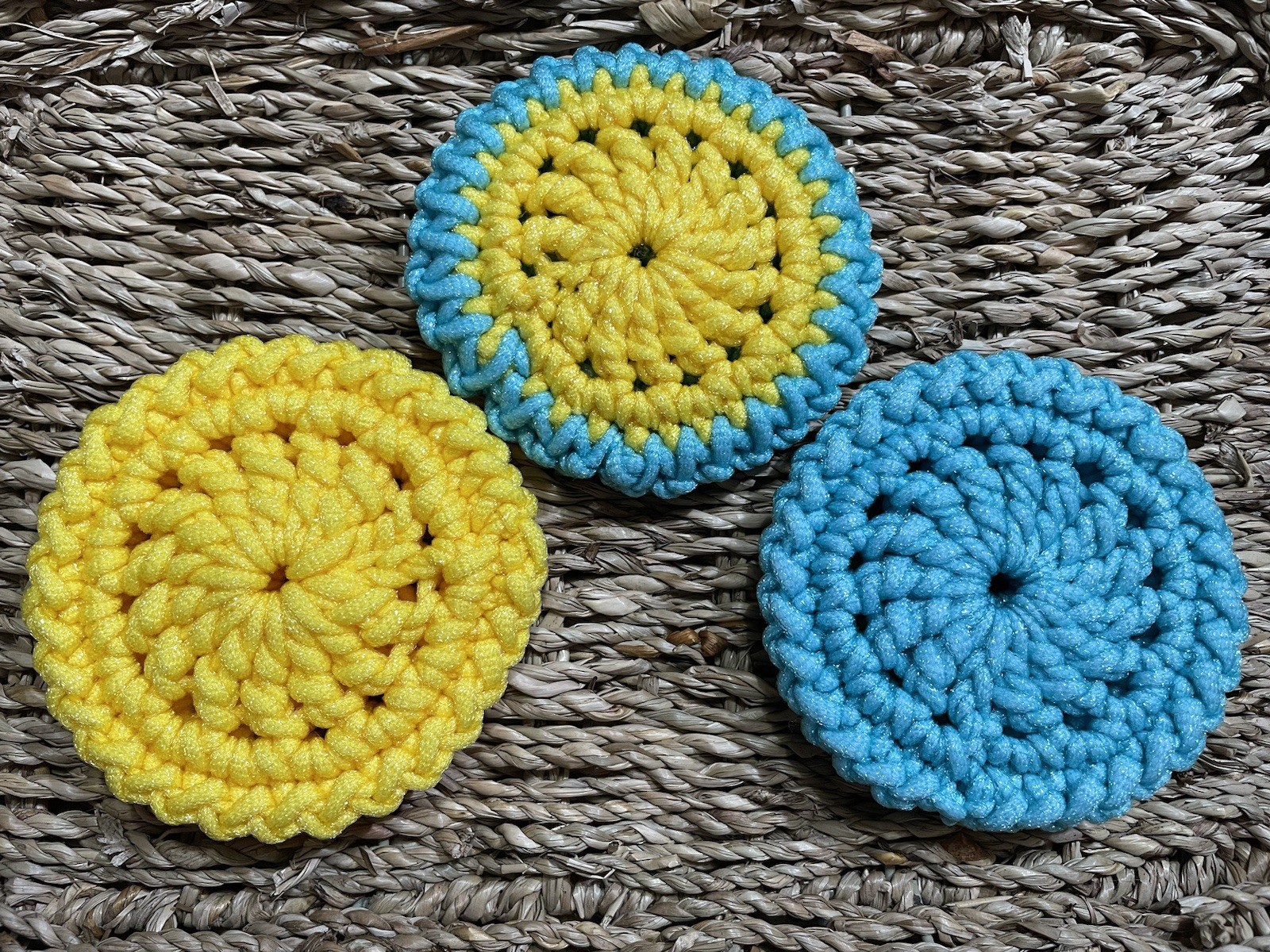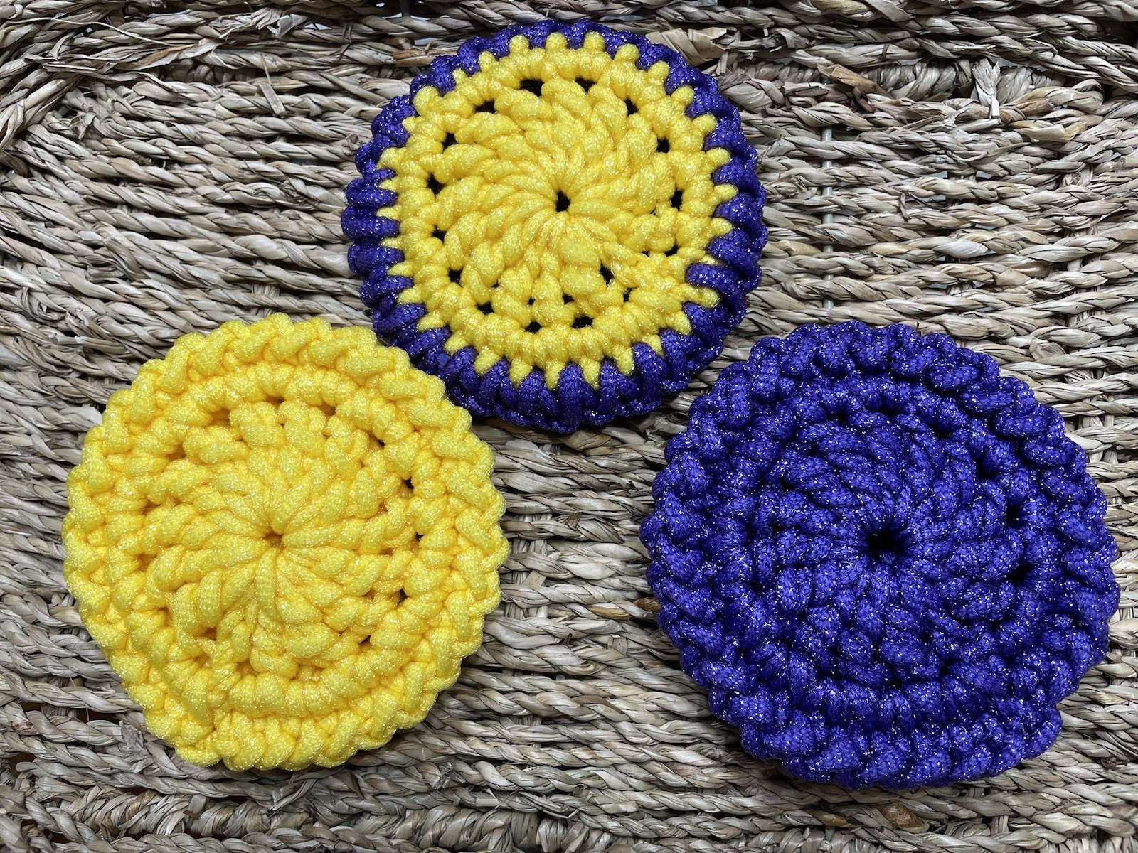 как выглядит Set of 3 Crochet Double Sided Dish Scrubby/Pot Scrubbers Your Choice of Colors фото