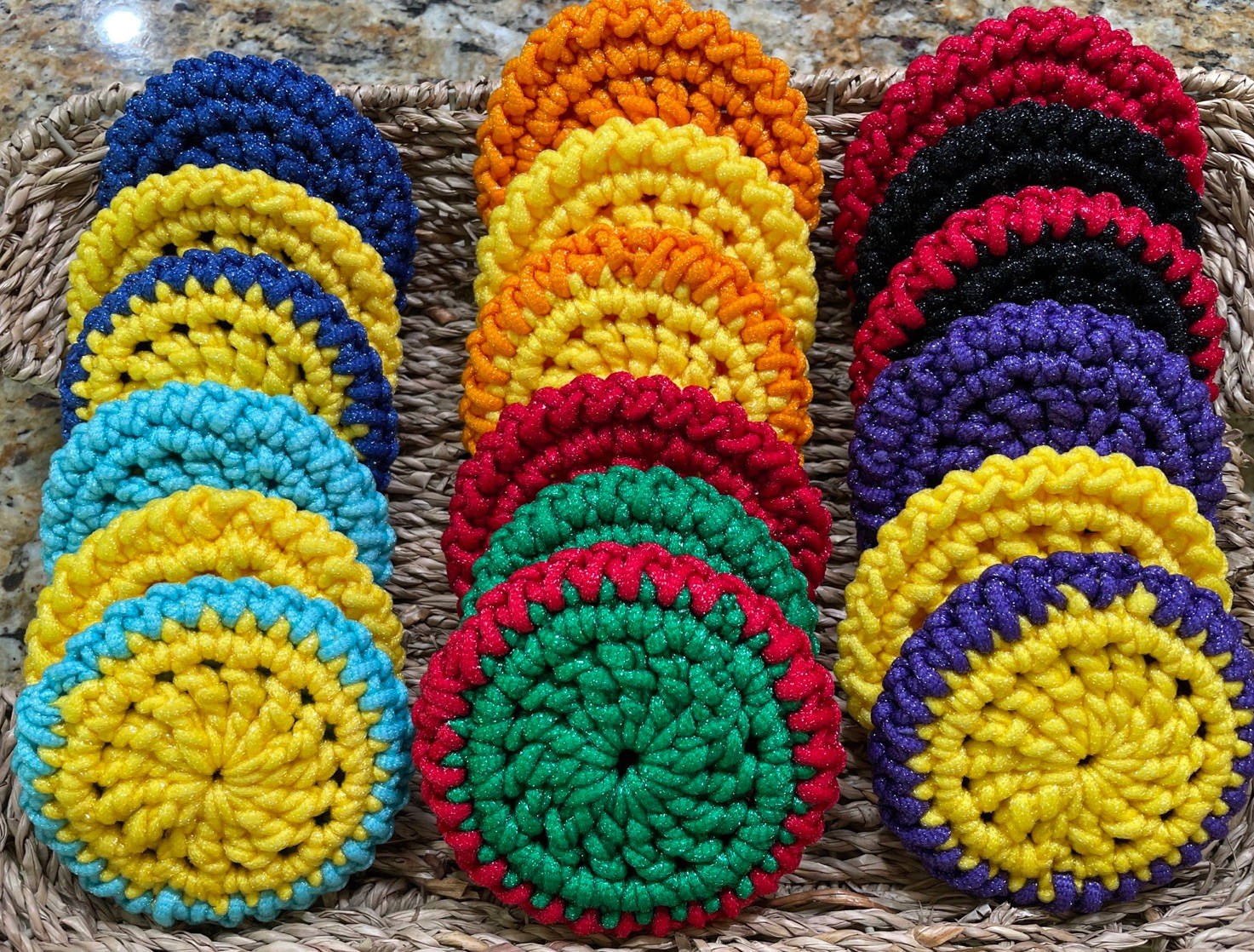 Set of 3 Crochet Double Sided Dish Scrubby/Pot Scrubbers Your Choice of Colors