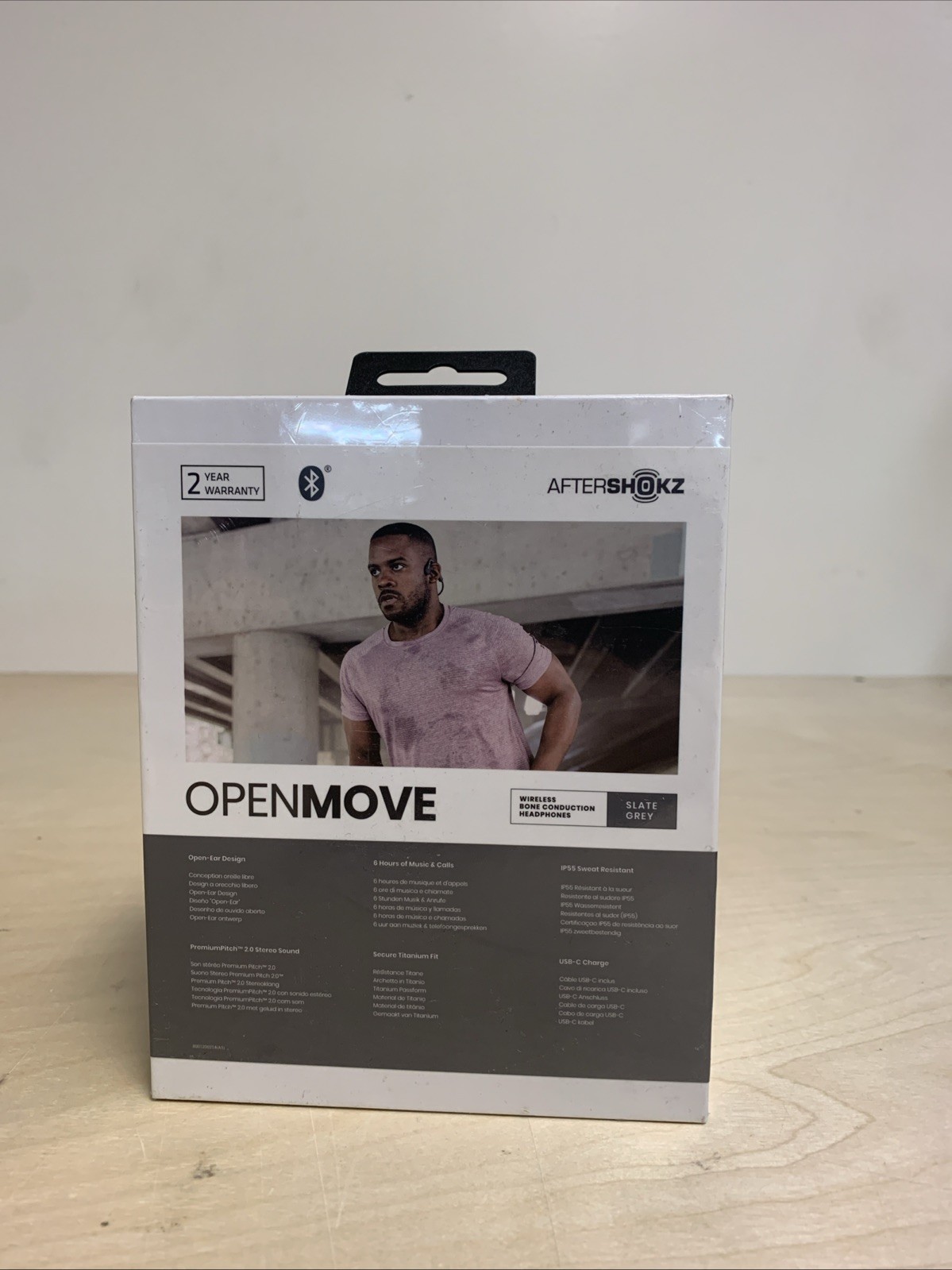 AfterShokz OpenMove Wireless Bone Conduction Headphones, AS660, Slate Grey, New