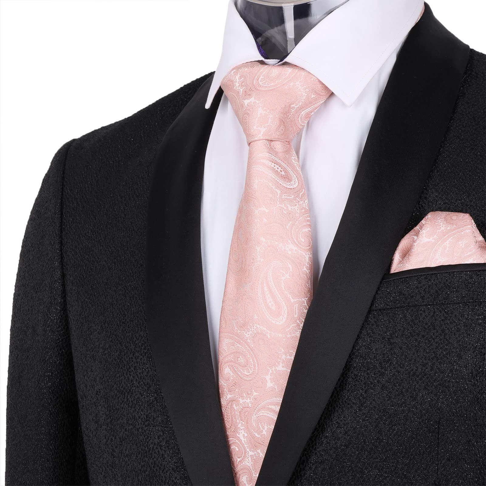 Men's Colorful Paisley Necktie and Pocket Square Set for Wedding Business