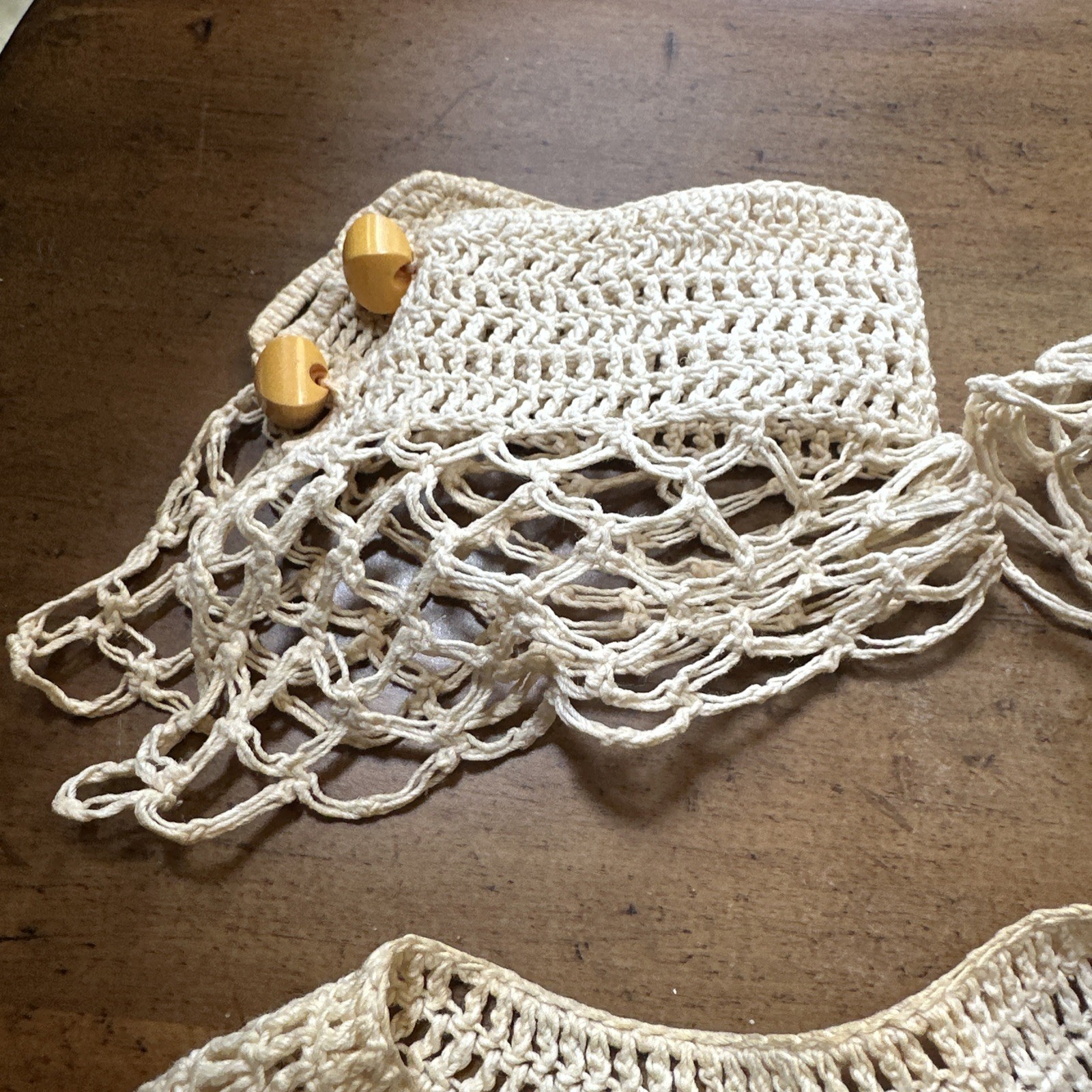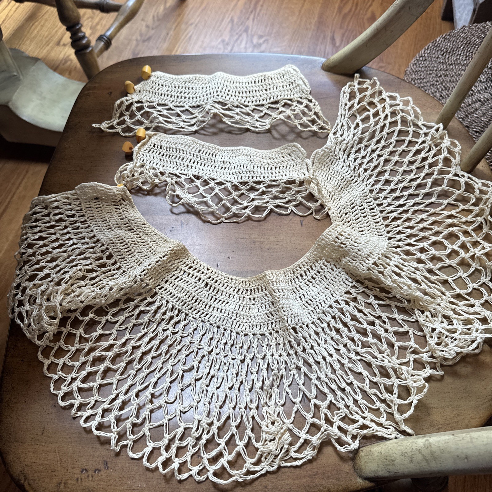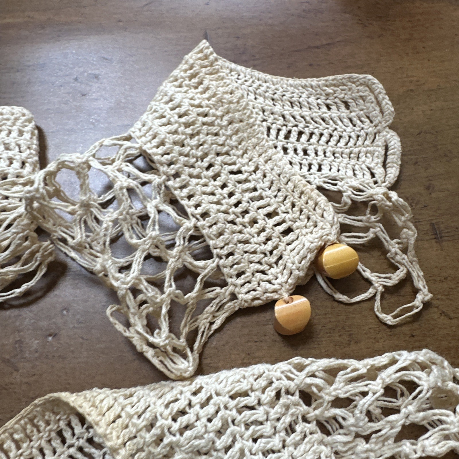 Vintage hand crochet ecru Detachable Collar MCM Arm Bands Cuff Set Buttons