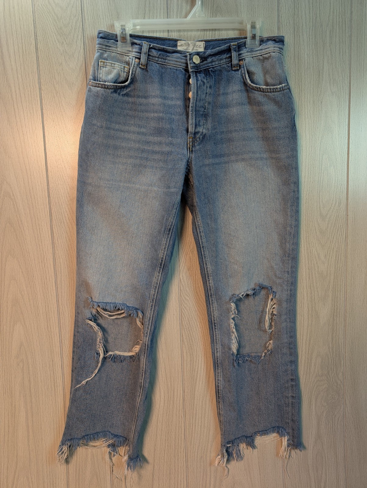 We The Free People Jeans Maggie Mid Rise Straight Leg Button Fly 27 Distressed