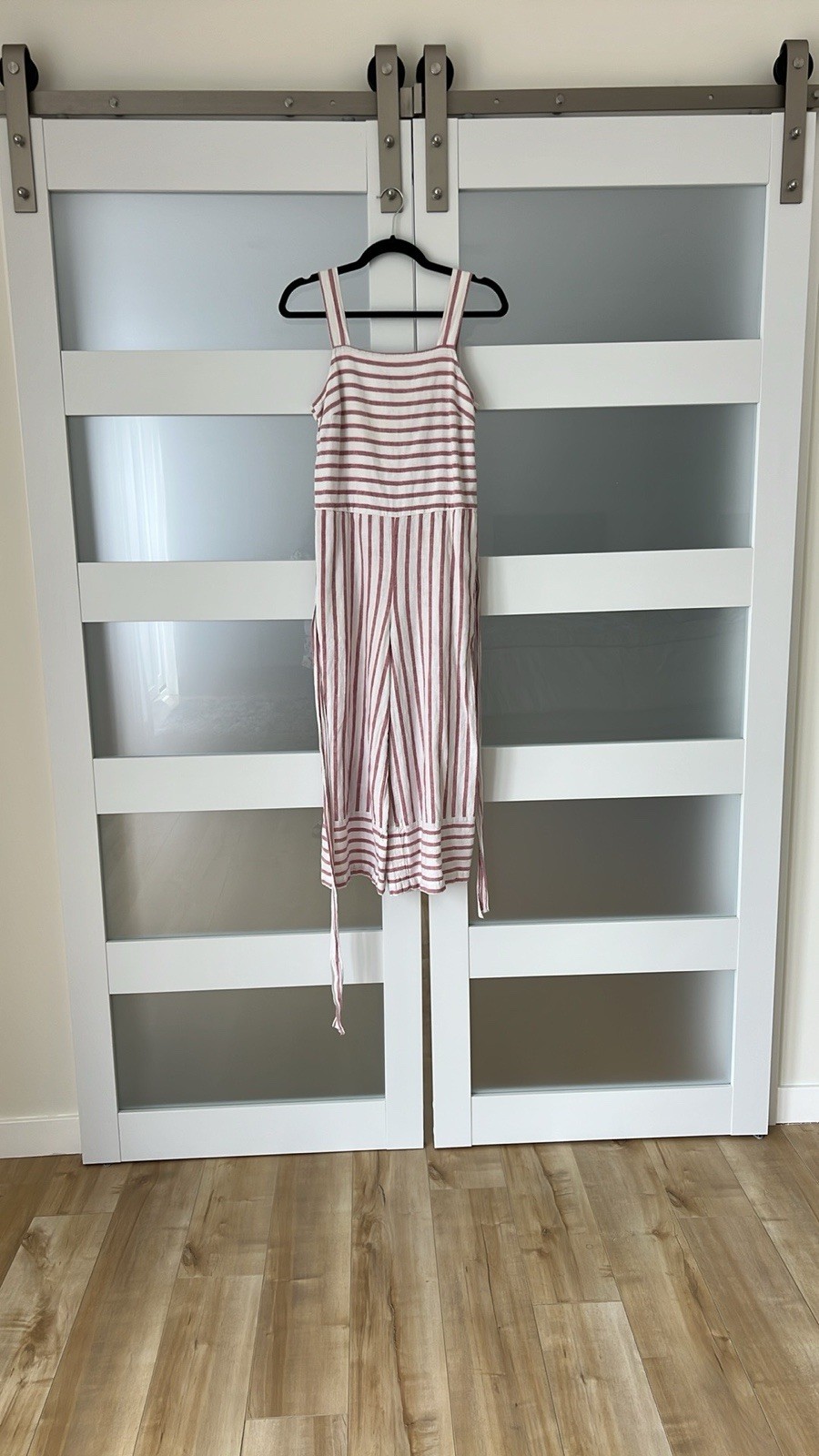 как выглядит beachlunchlounge Women XS Red White Stripe Linen Cotton Wide Leg Talia Jumpsuit фото