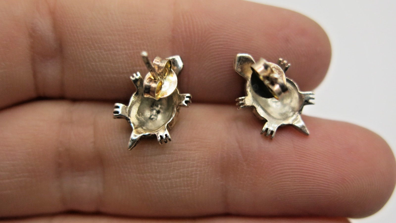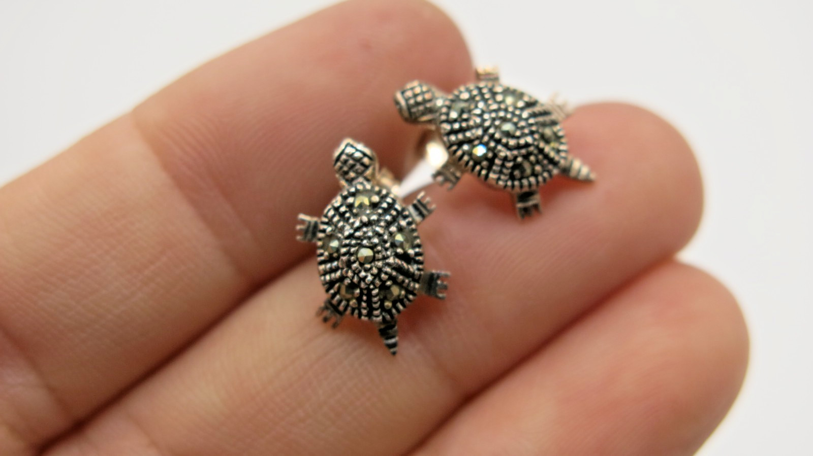 Tiny Cute Turtle Stud Earrings 925 Sterling Silver with Marcasite Thailand