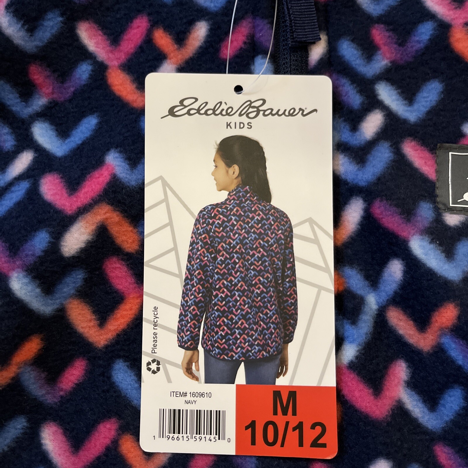 как выглядит Eddie Bauer Youth 1/4 Zip Quest Fleece Printed Dark Blue, Size Med 10/12 NWT фото
