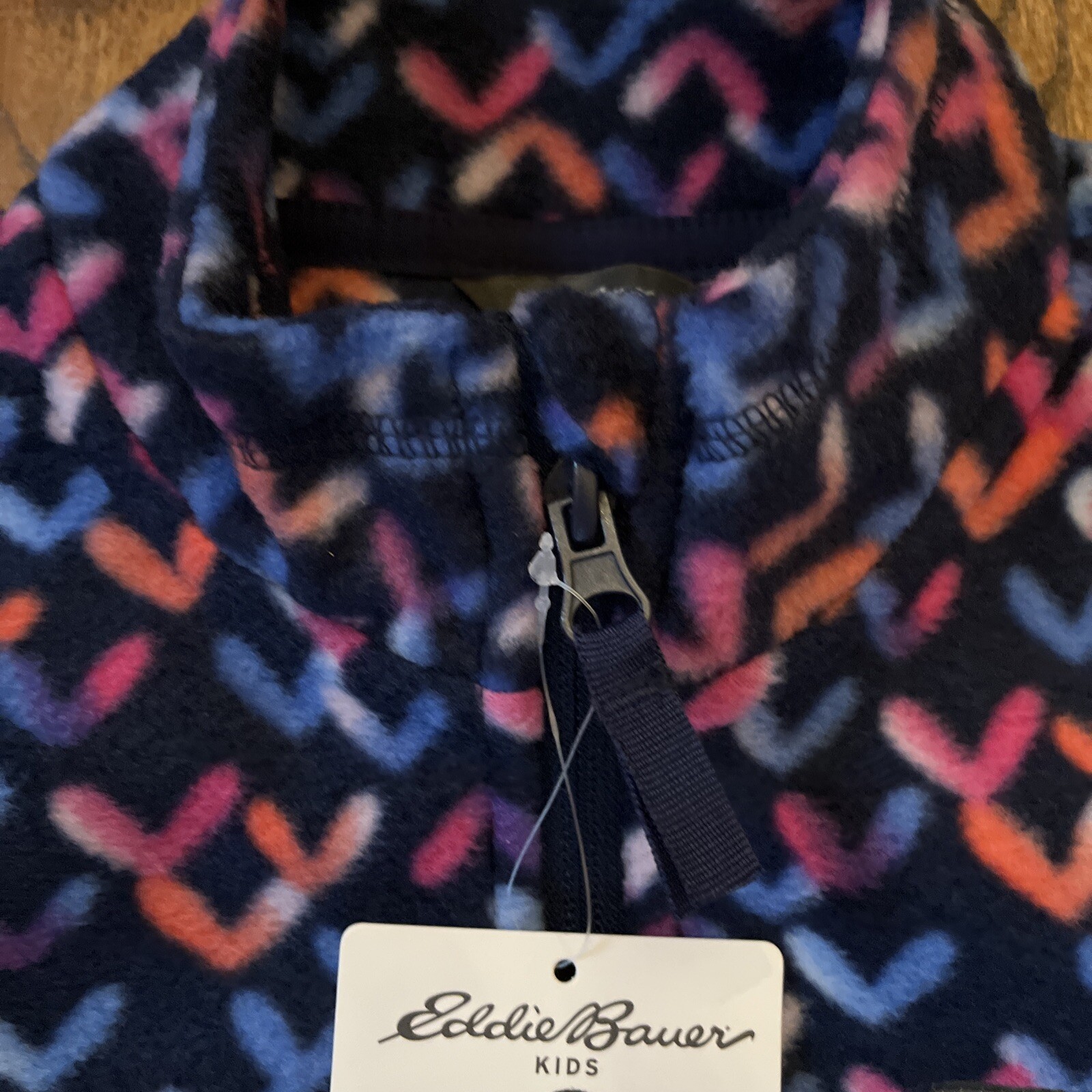 Eddie Bauer Youth 1/4 Zip Quest Fleece Printed Dark Blue, Size Med 10/12 NWT