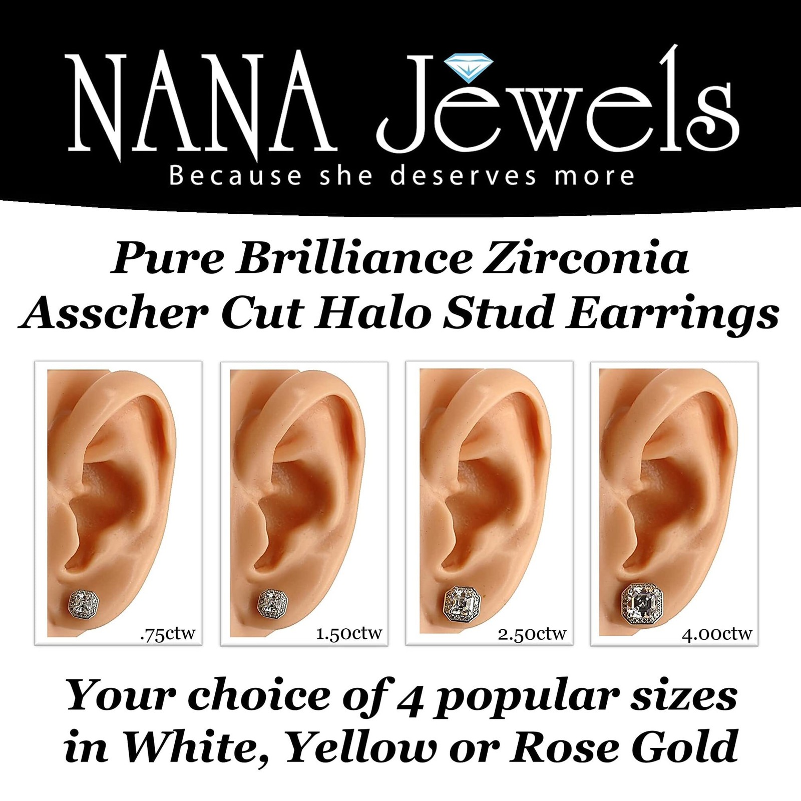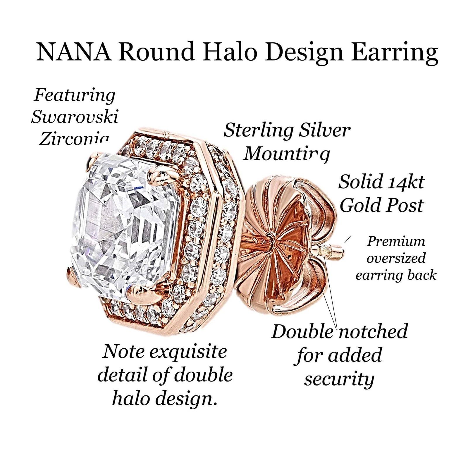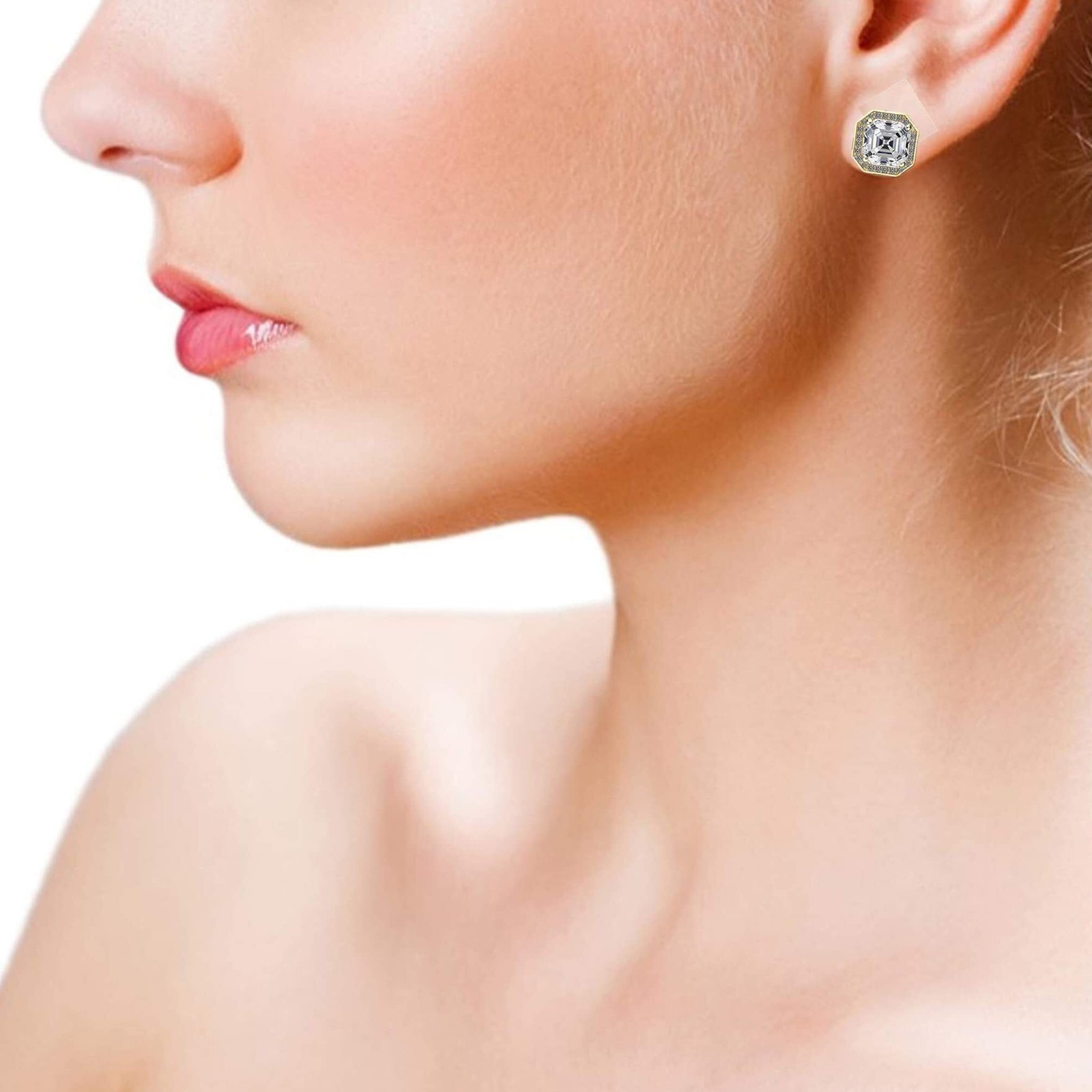 Rose Gold Plated Silver Asscher Halo CZ Stud Earrings With 14K Gold Post - 5MM