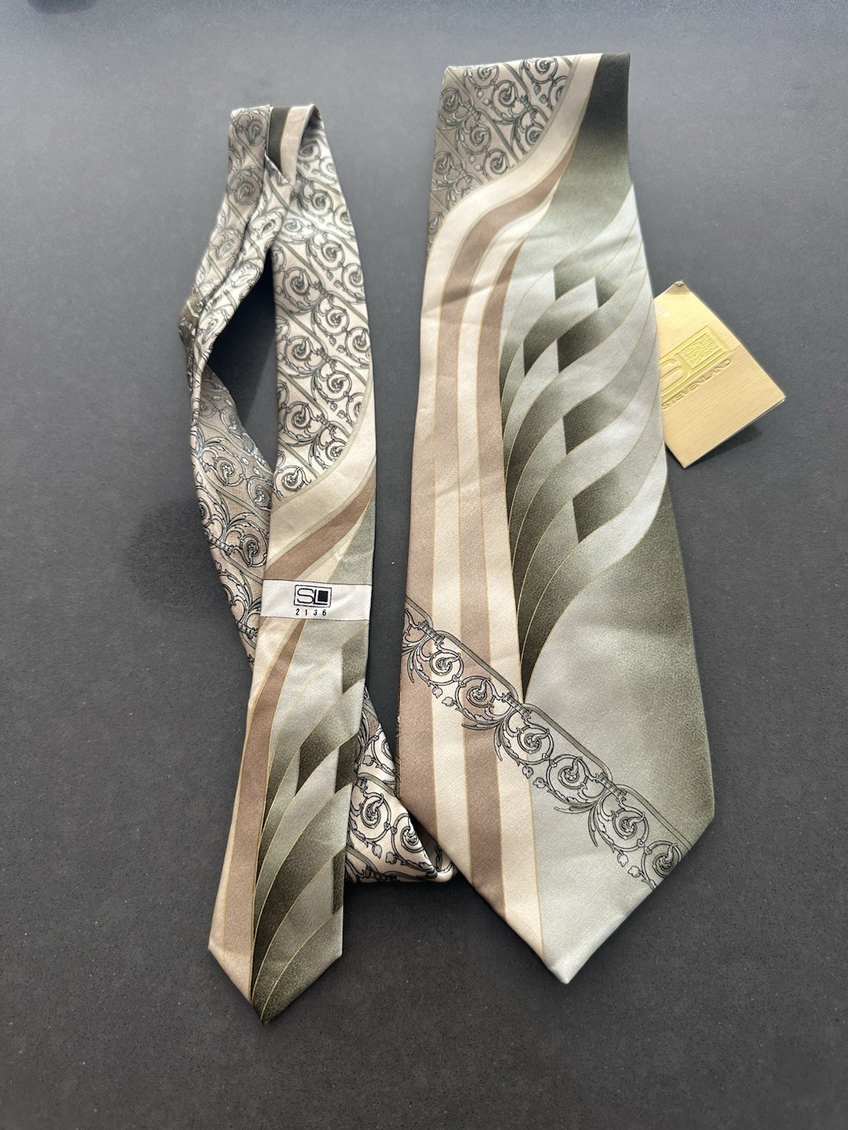 STEVEN LAND SILK TIE GREEN GOLD SATIN LUXURY TEXTURE 4