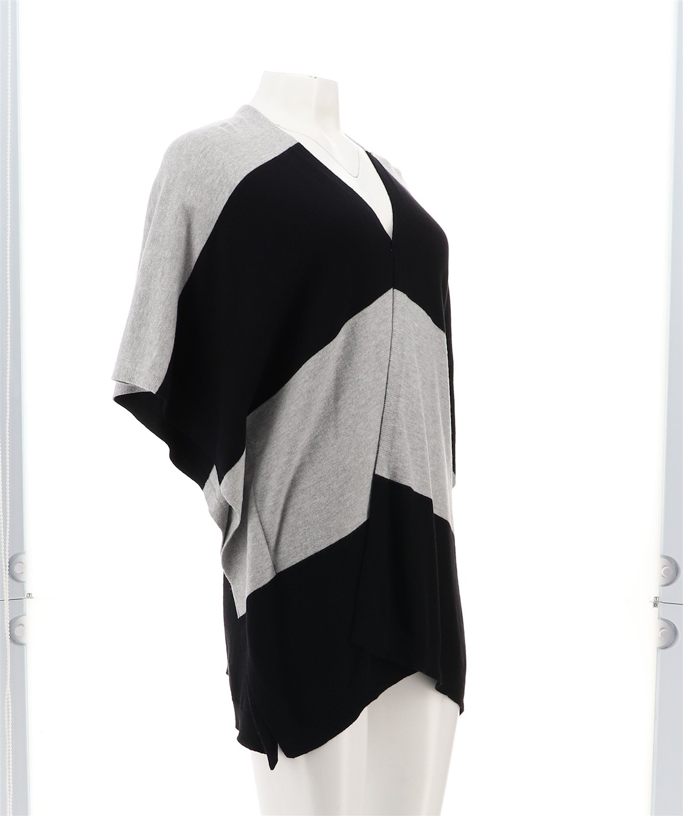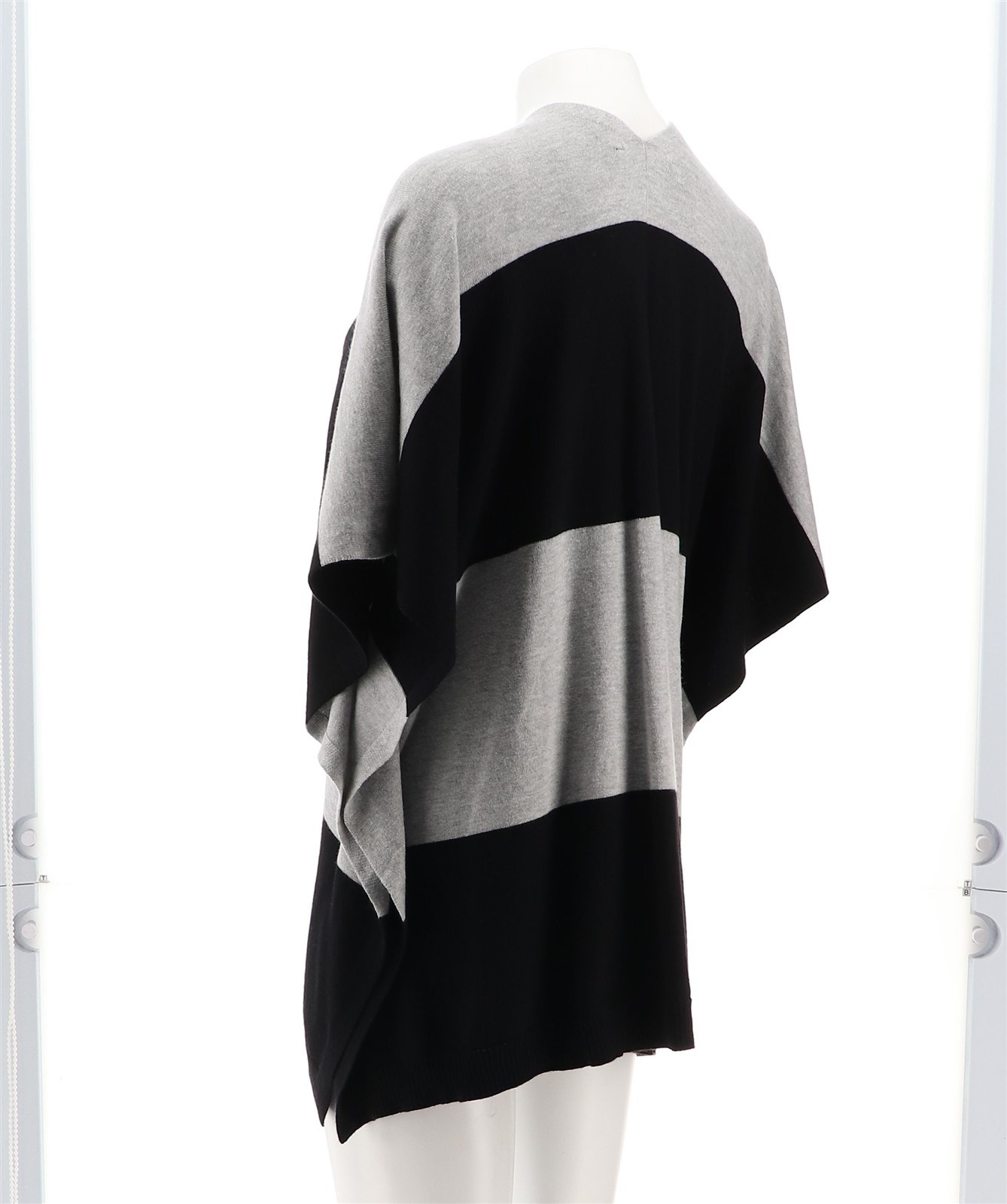 как выглядит Colleen Lopez Open Front Striped Poncho Black Heather Gray M/L NWOT 1009 фото