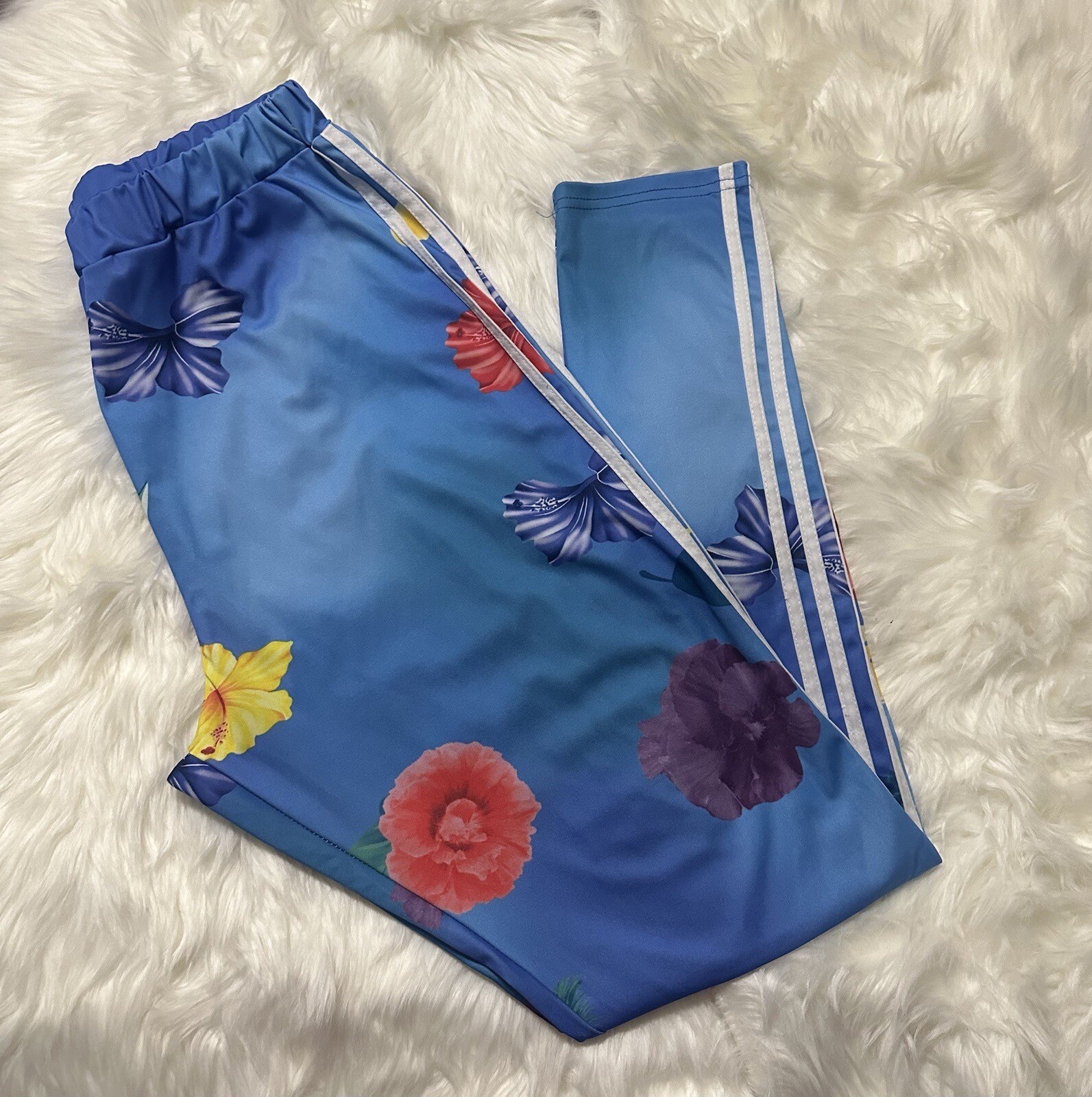 Boutique ORIGINAL Women's 2PC. Set Big Leaf Baby Blue Floral Tracksuit L