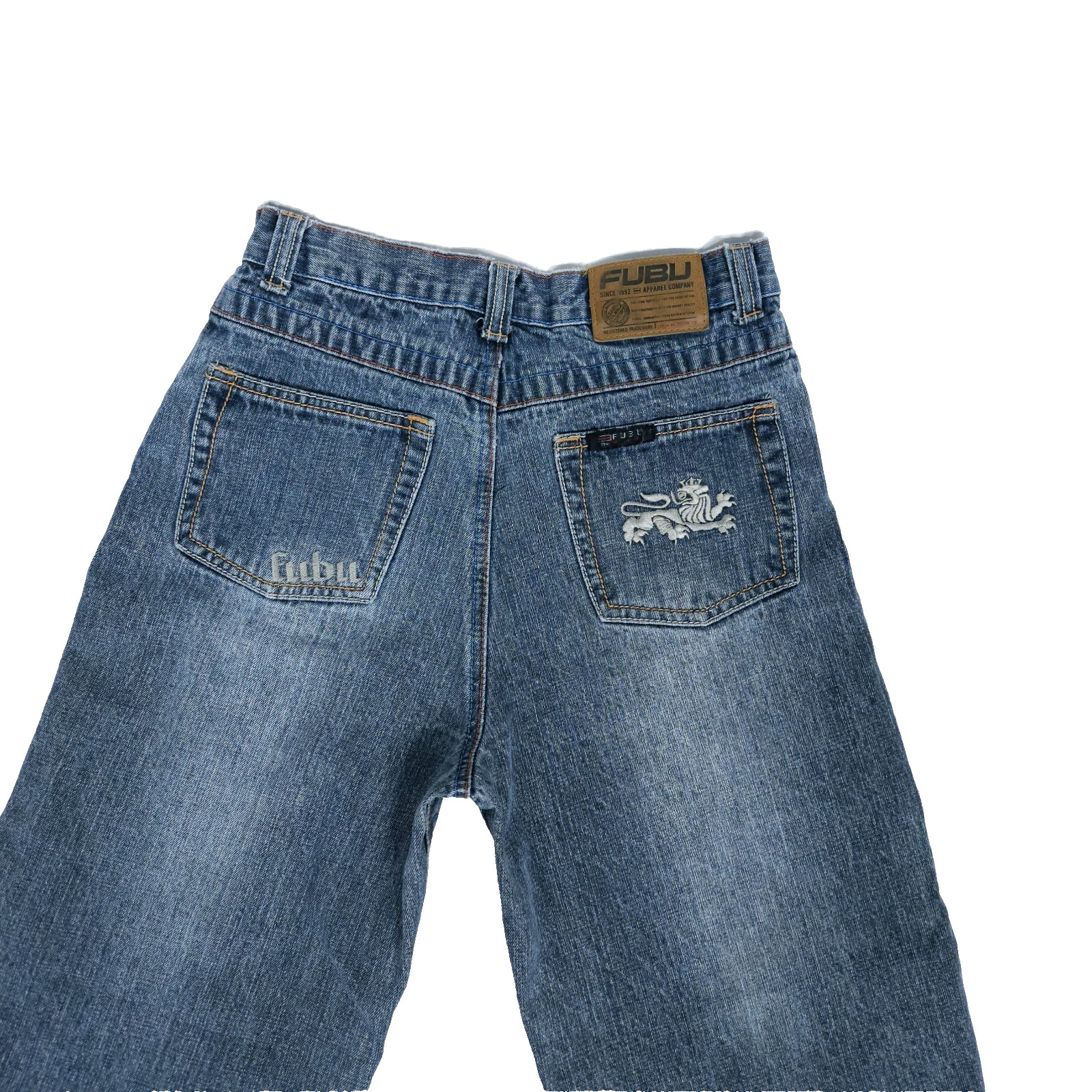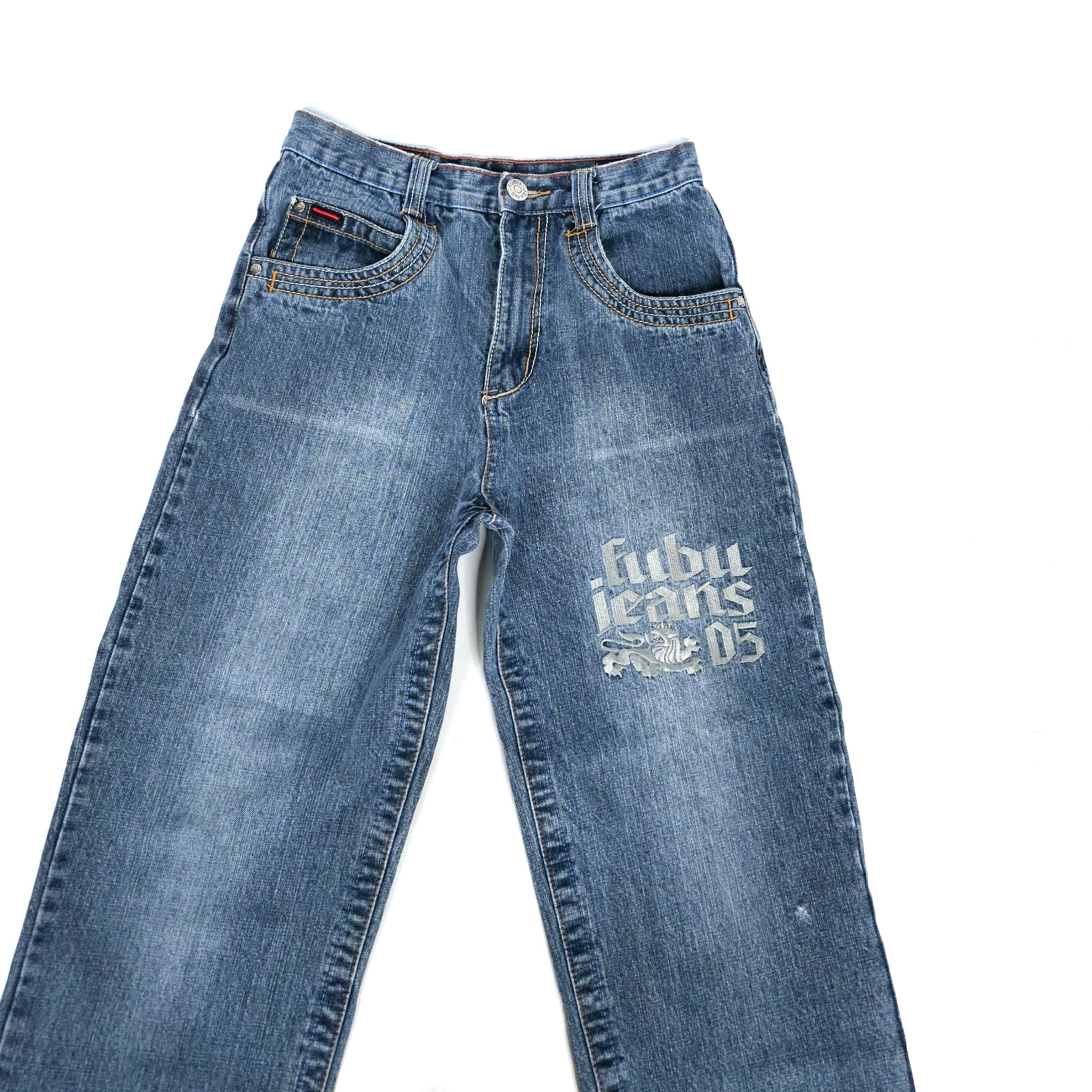 VTG Fubu Jeans Boys 18 Wide Leg Blue 26 X 27 Baggy Skater Hip Hop Embroidered