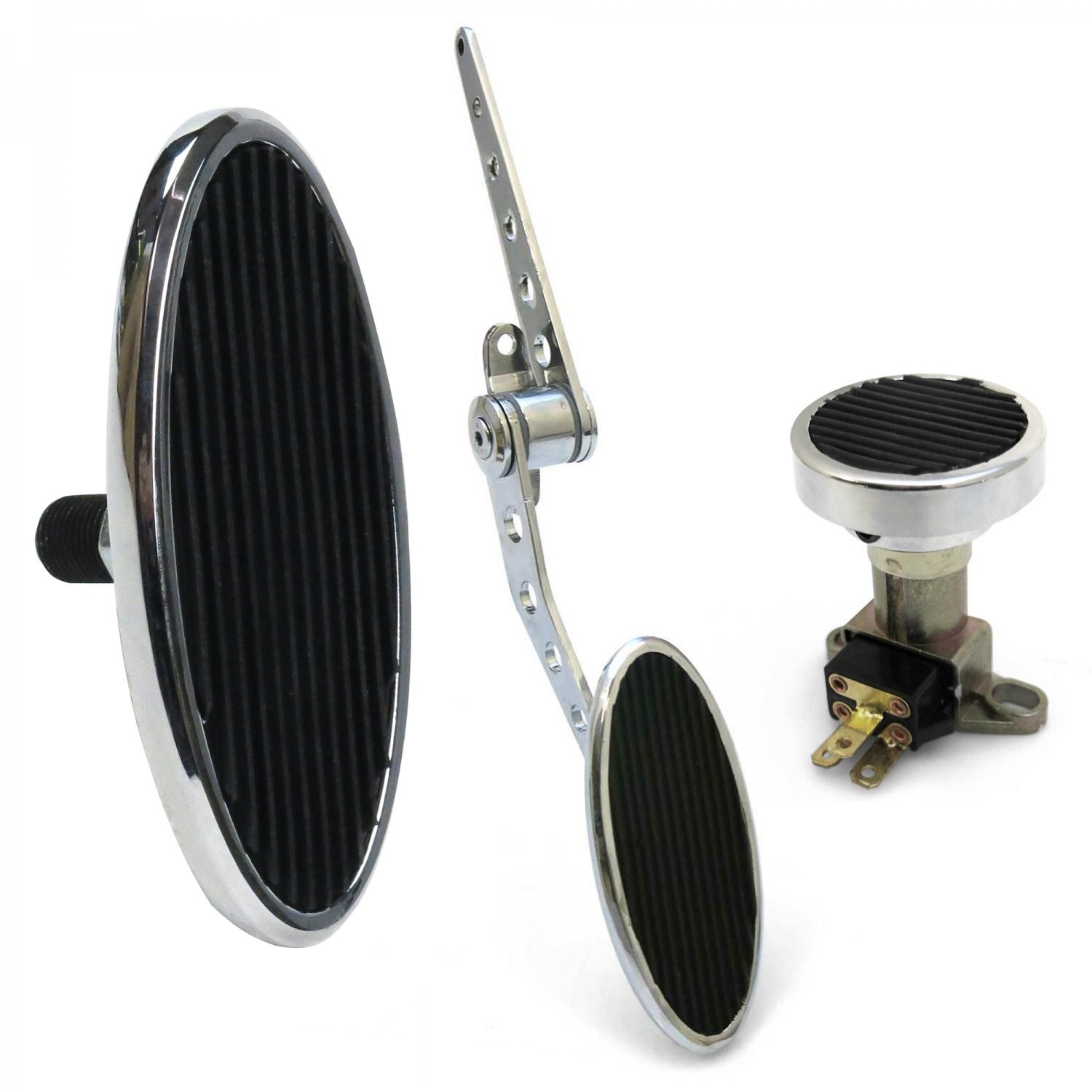 • Chromed Billet Firewall Mount Gas Pedal, Lg Oval Brake/Clutch Pedal Dimmer Pad