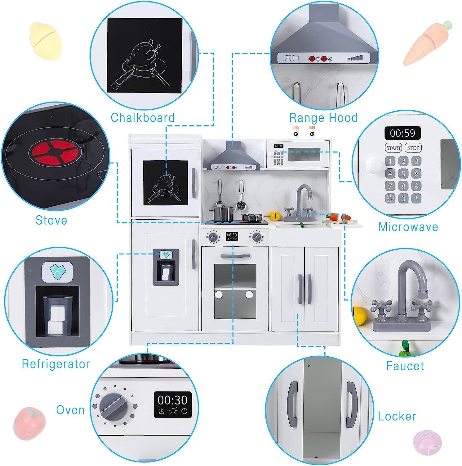 Large Cooking Pretend Play Kitchen Sets Kids Wooden Playset Toys Gifts White