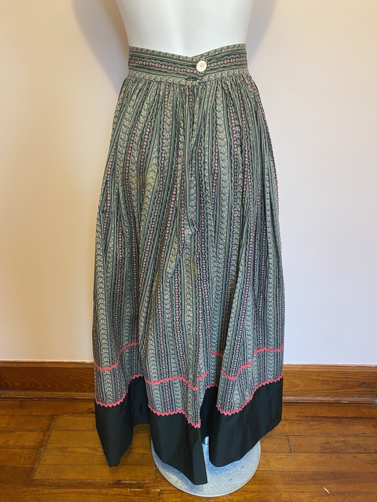 VTG 70s handmade made Boho Western Maxi Skirt Green Prairie Floral Waist 26 Sm