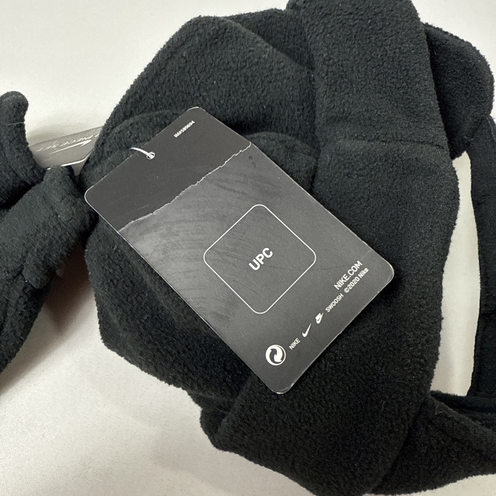 как выглядит Nike Swoosh Black Fleece Infant Baby Winter Trapper Hat And Mittens Set фото