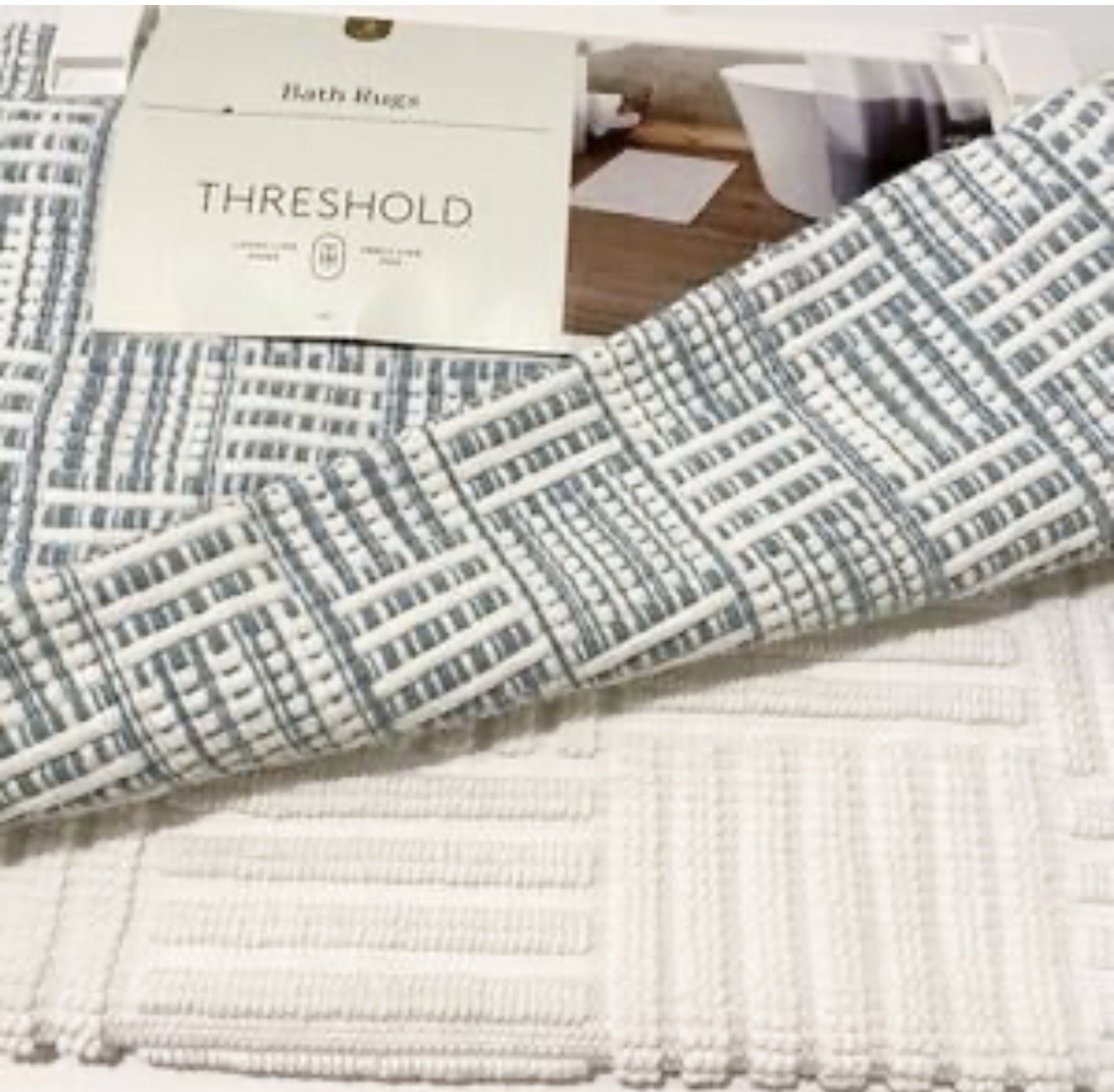 2-Piece Threshold Teal and White Woven Bath Rugs Set- Soft Bathmats 17 x 24 NWT