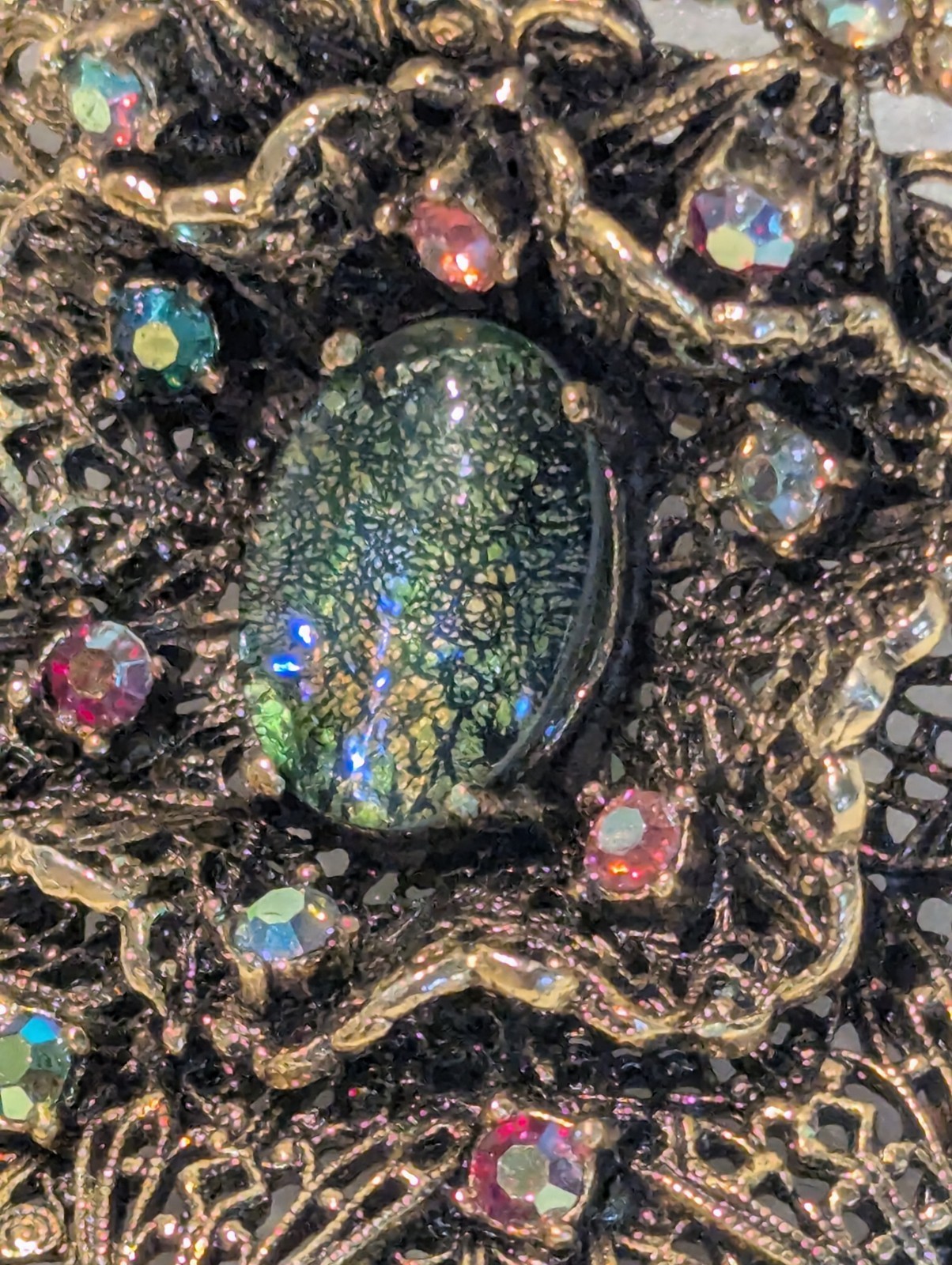 Vintage Musi Colorful Dragon Glass Cabochon AB Rhinestone Statement Shoe Clips