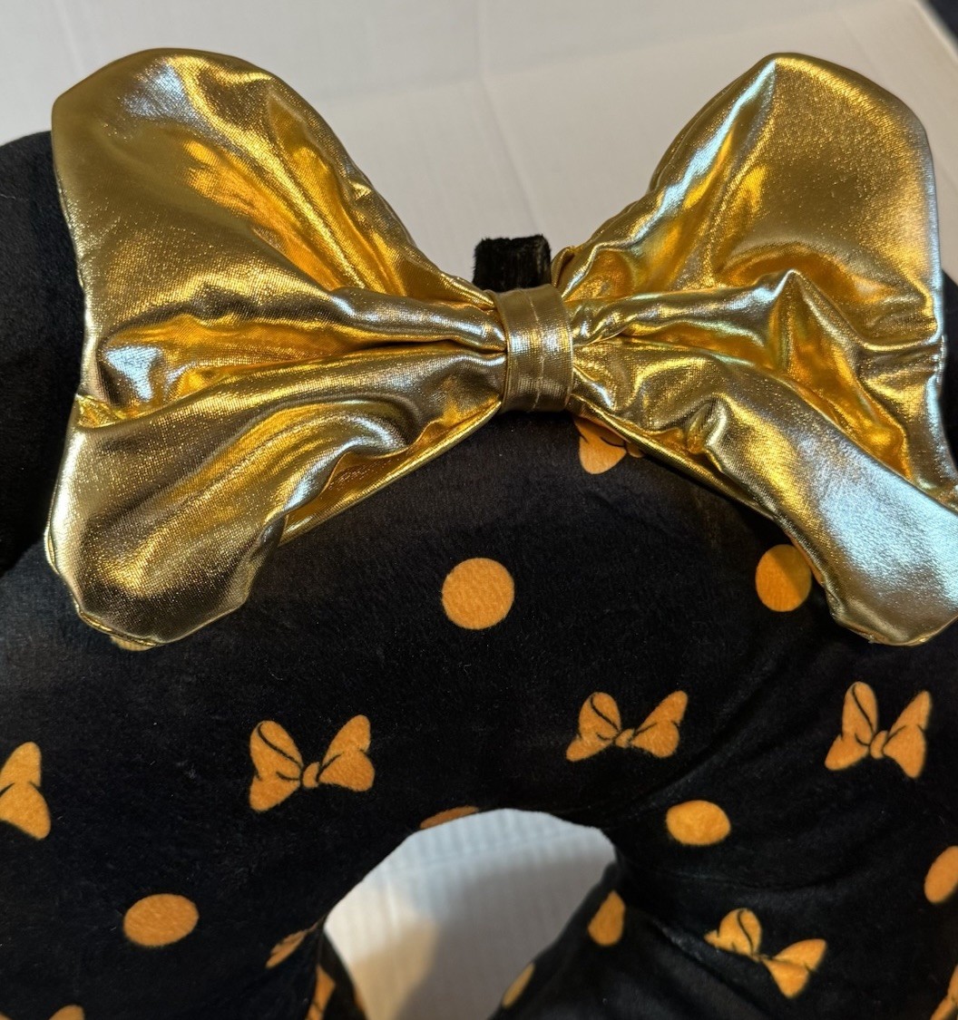 • Disney Minnie Mouse Travel Soft Plush Pillow Gold Bow Ears