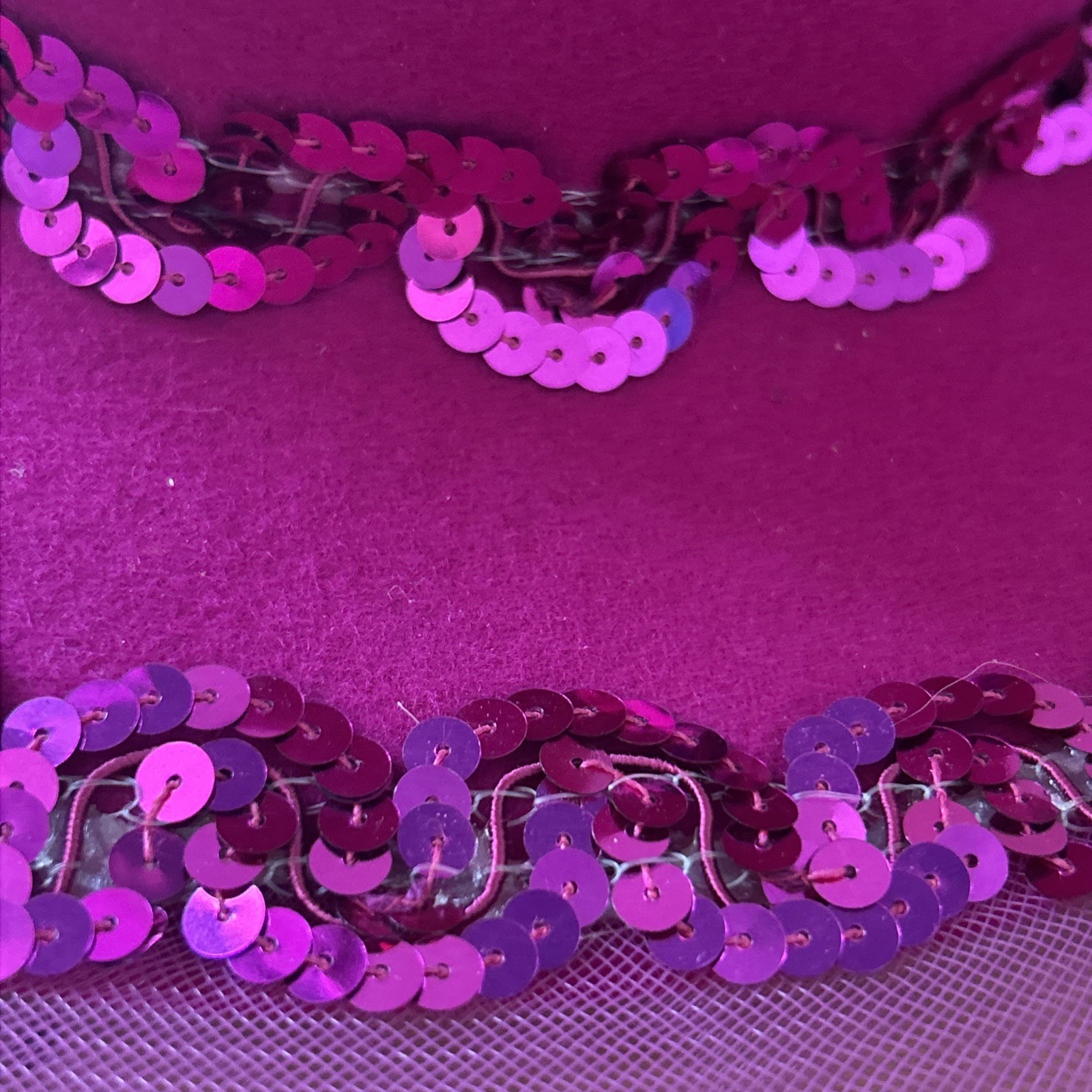 как выглядит Vtg Fashion Hat WPL 4384 Fucshia Wool Felt Mesh Bow Sequins Derby Church 57 cm фото