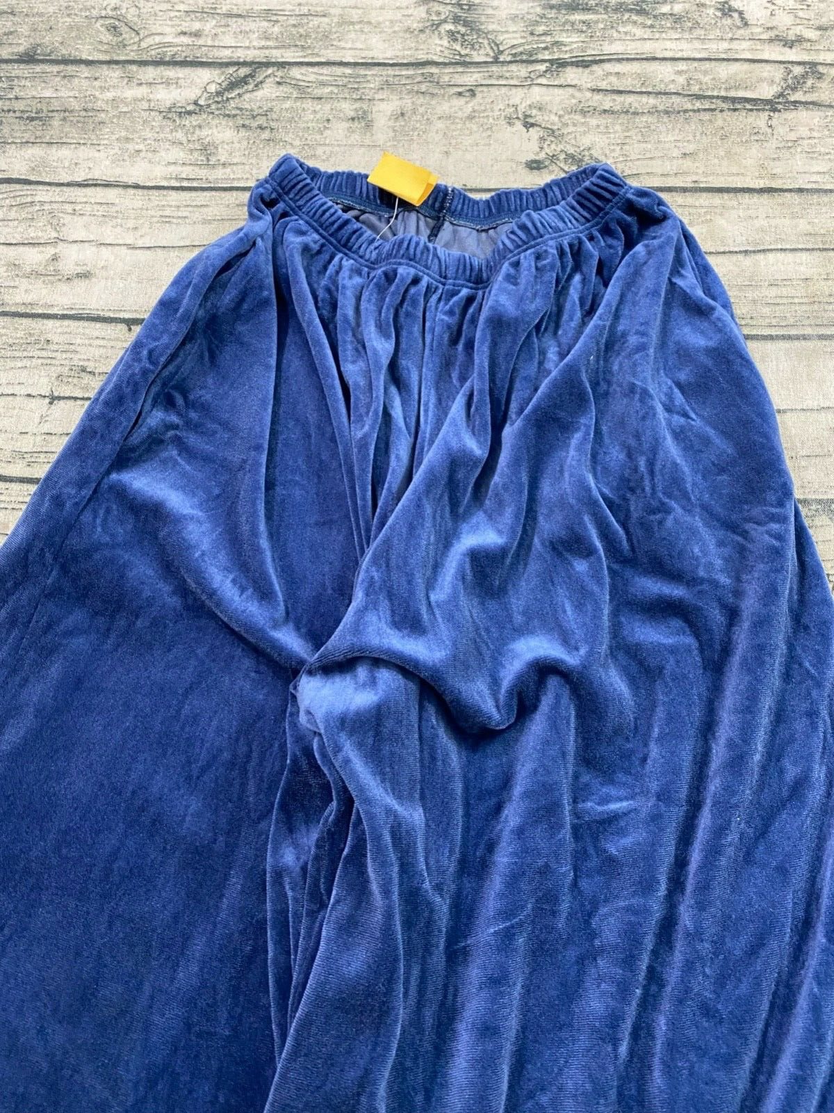 как выглядит Vtg 60s 70s Velour Wide Leg Bell Bottom Pants Elastic Waist 27" Inseam Blue фото