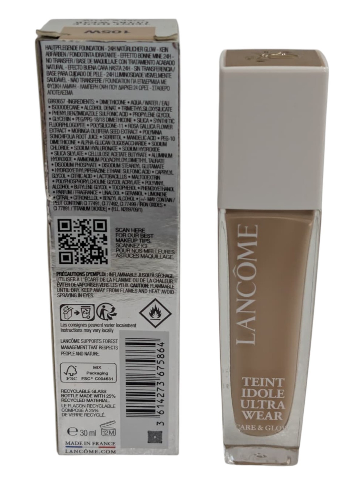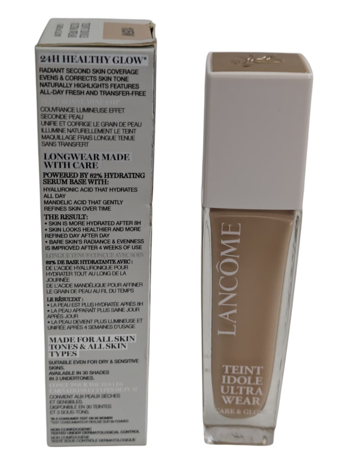 как выглядит Lancome Teint Idole Ultra Wear Care Glow 1 oz / 30 ml Shade 105W MSRP 47 фото