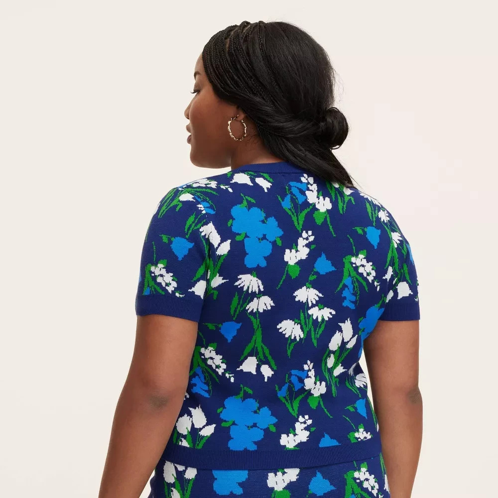 как выглядит Mixed Floral Short Sleeve Crewneck Pullover Sweater - kate spade size small фото