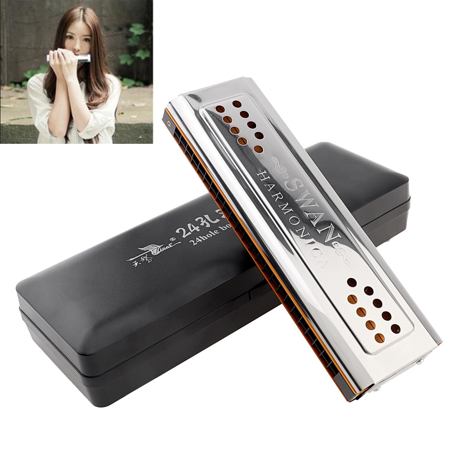 New Harmonica C G Key 24 Holes Harp Mouth Organ Woodwind Instruments Tremolo US