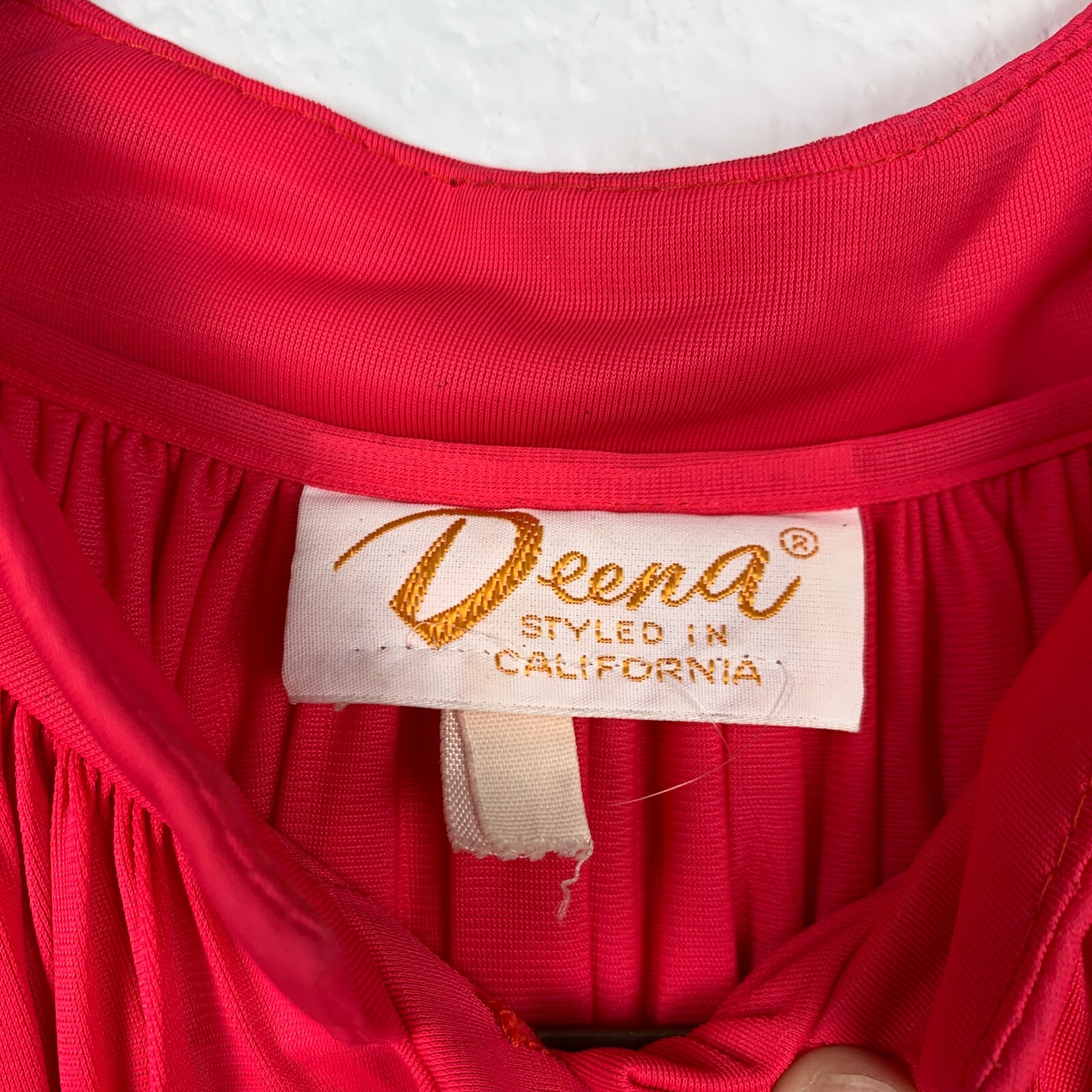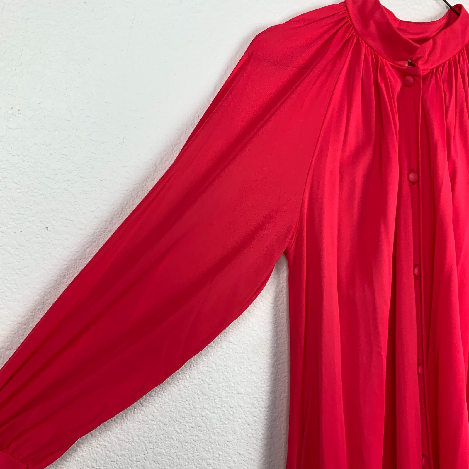 Vintage Deena California Dark Pink Nylon Button Robe Nightgown Size Small