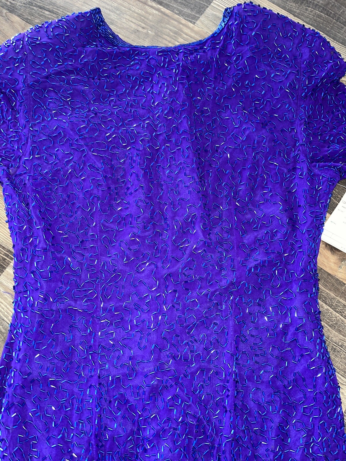 Morgan Taylor Evening Beaded Dress Size 8P Petite Purple Violet READ