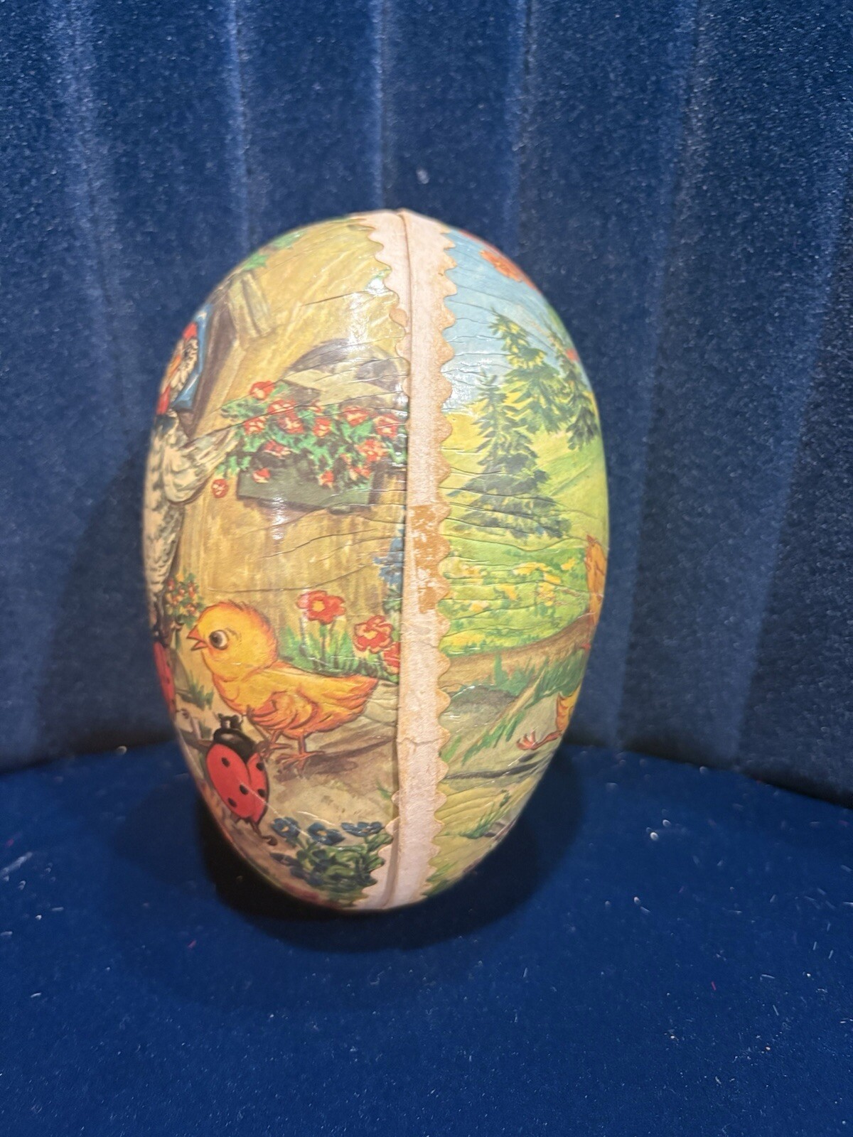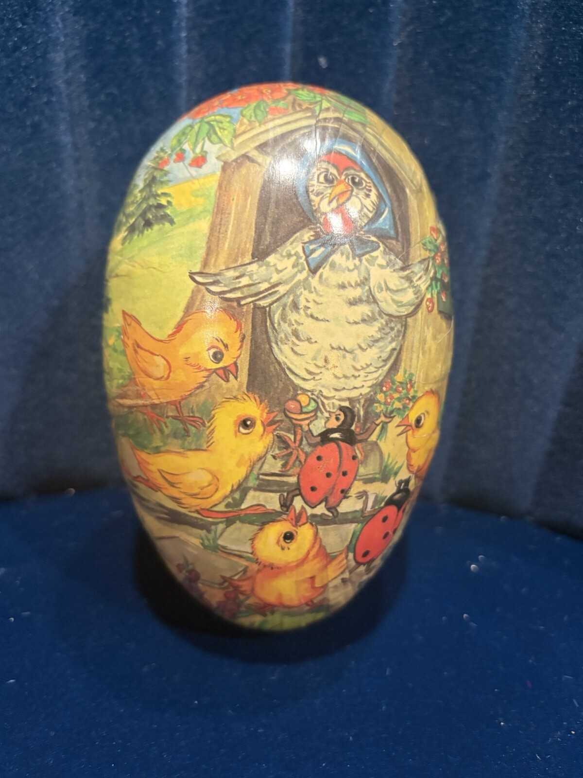 Antique German Paper Mache Easter Egg 6" Candy Container Chicken Chicks Hen