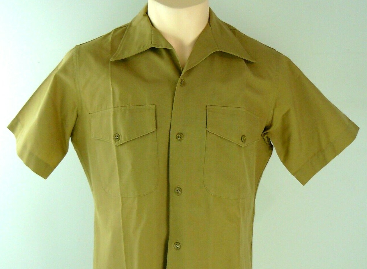 как выглядит Vintage USMC Great Northern Tan Uniform Shirt Wool Blend Serial 675 Size Large фото