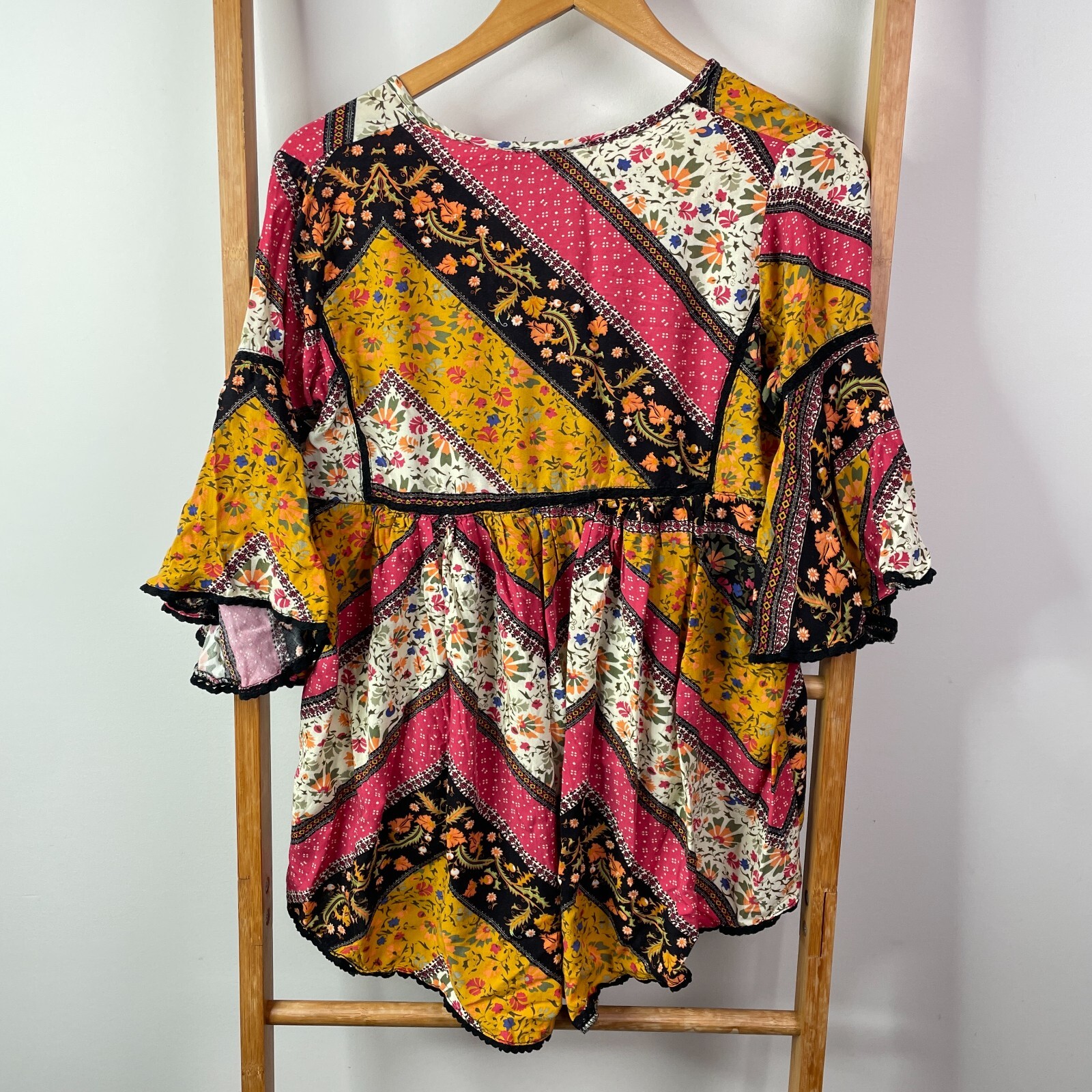 как выглядит Jaase Romper Womens Small Multicolour Floral Print Bell Sleeve Button Front Boho фото