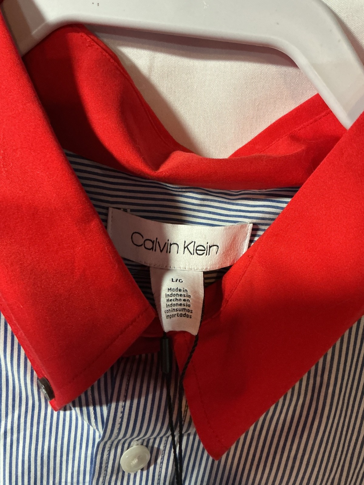 Calvin Klein Slim Fit Dress Shirt Mens Large Blue Striped Collar button up NEW