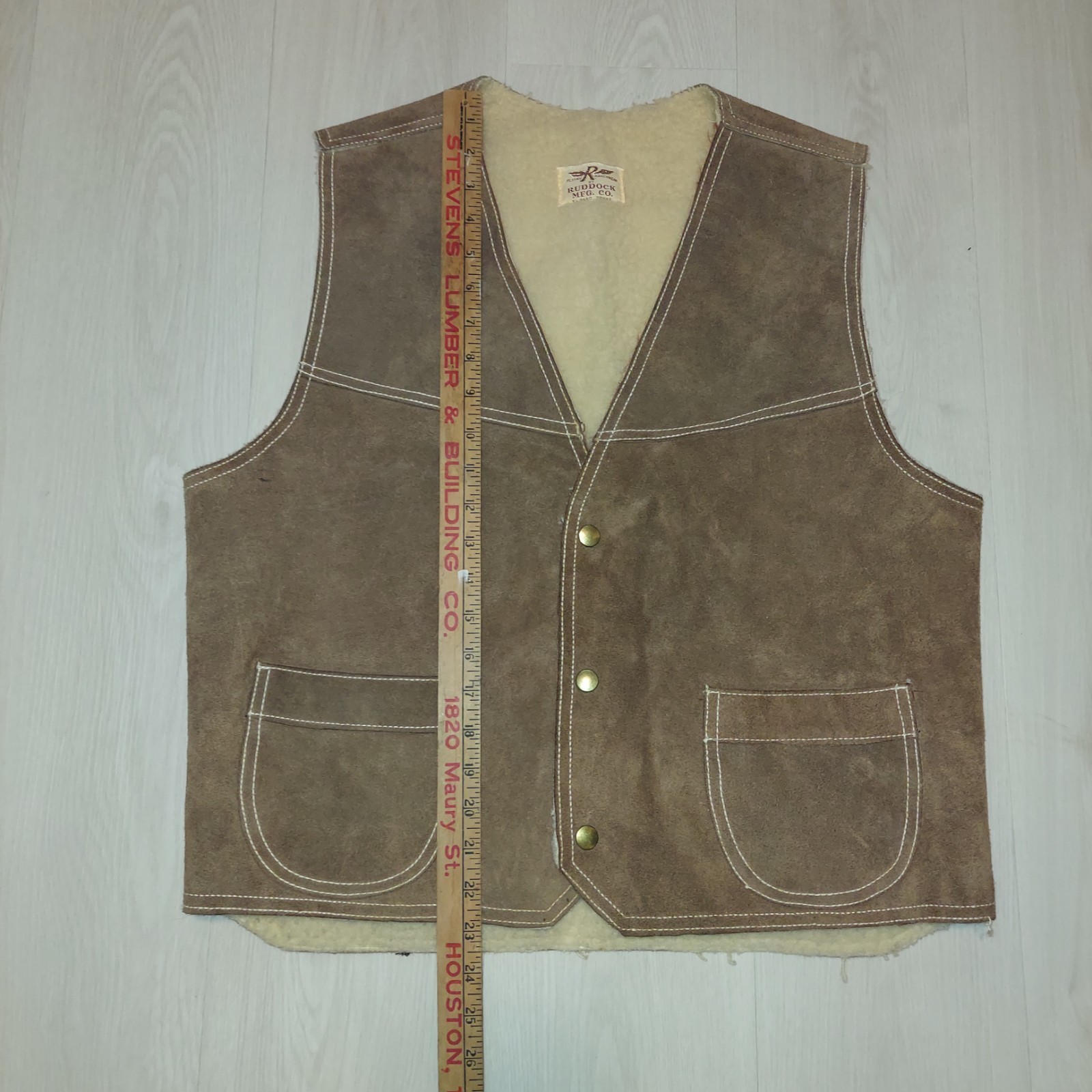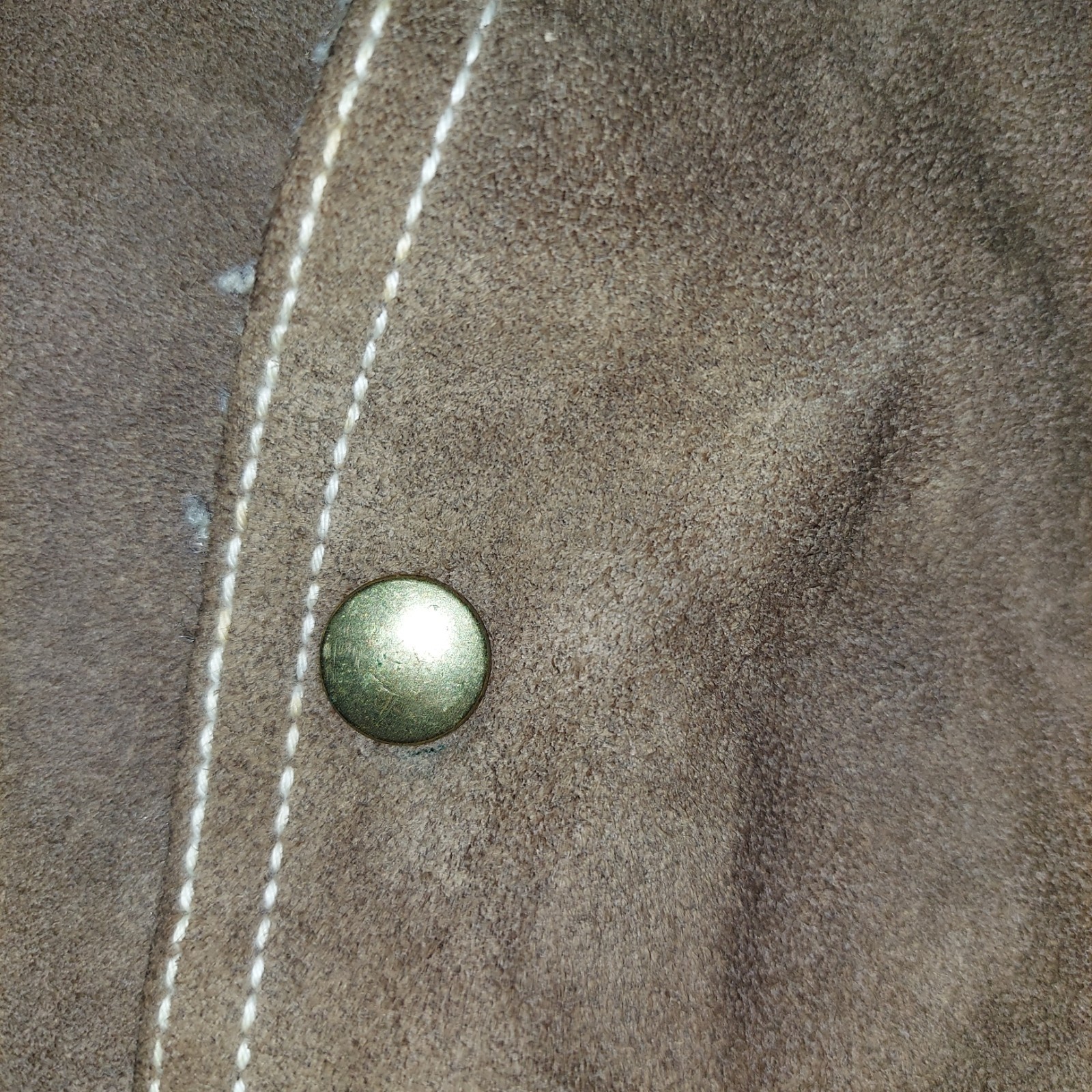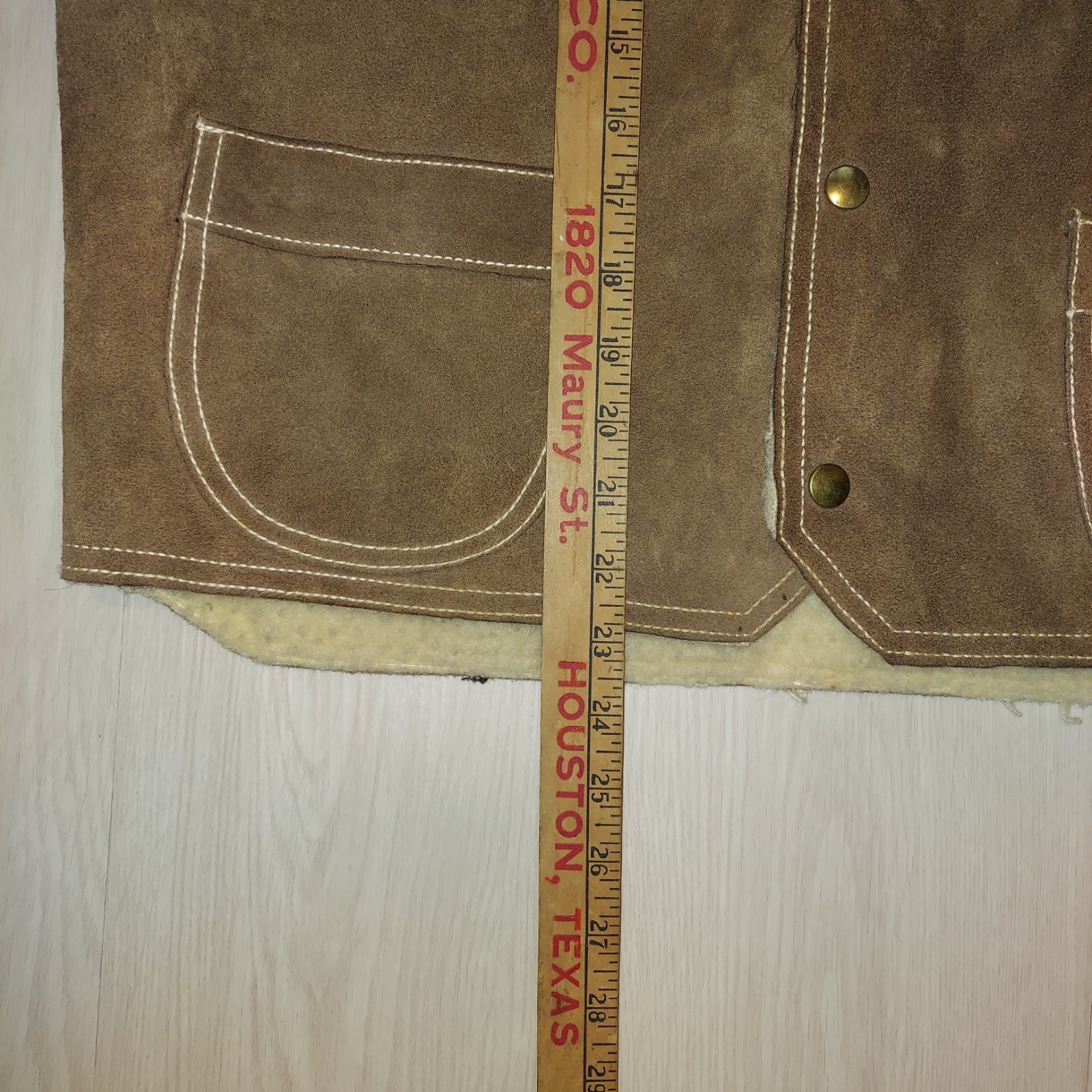 как выглядит Vintage Ranchwear Brand Suede Leather Shearling lined Snap Up Vest Sz L фото