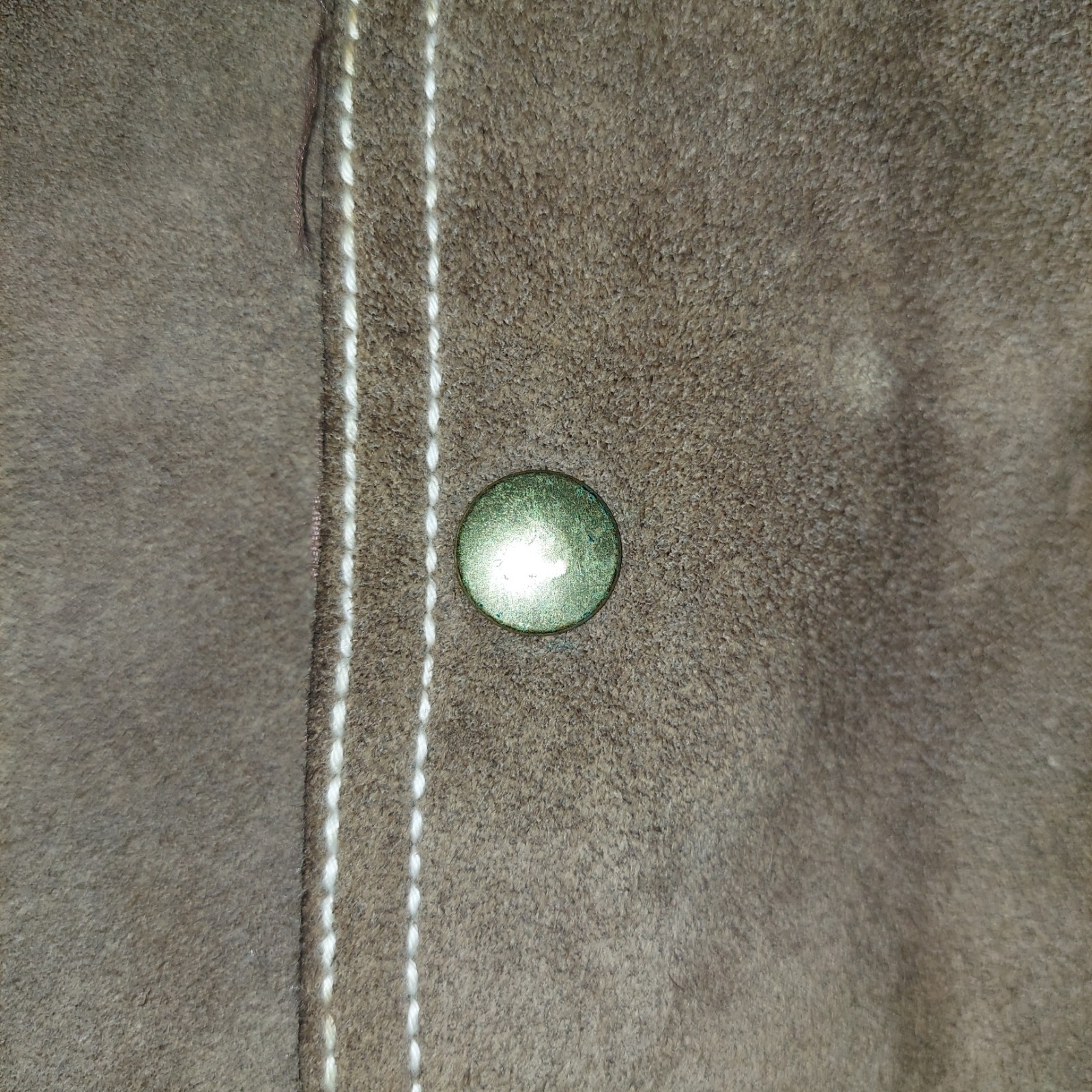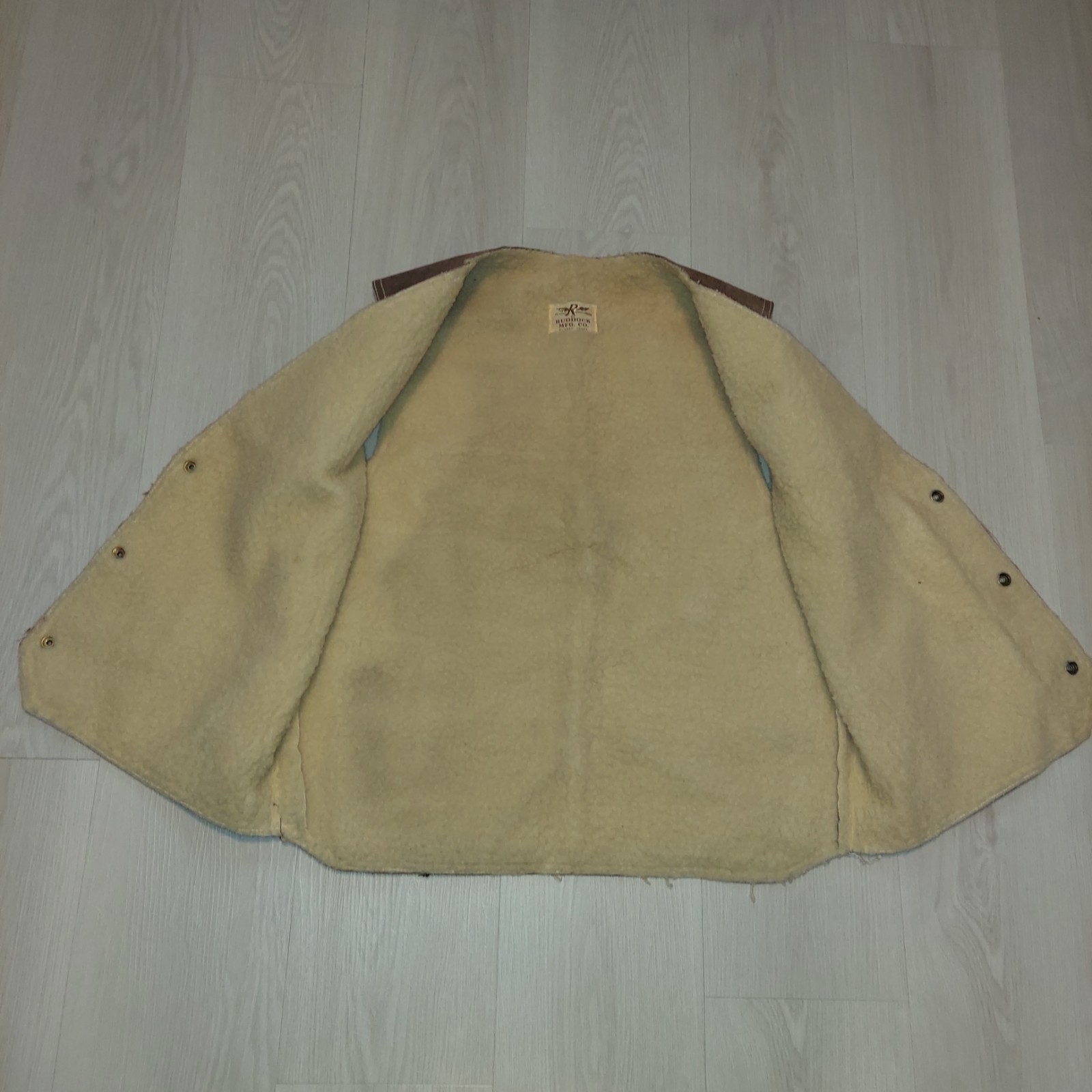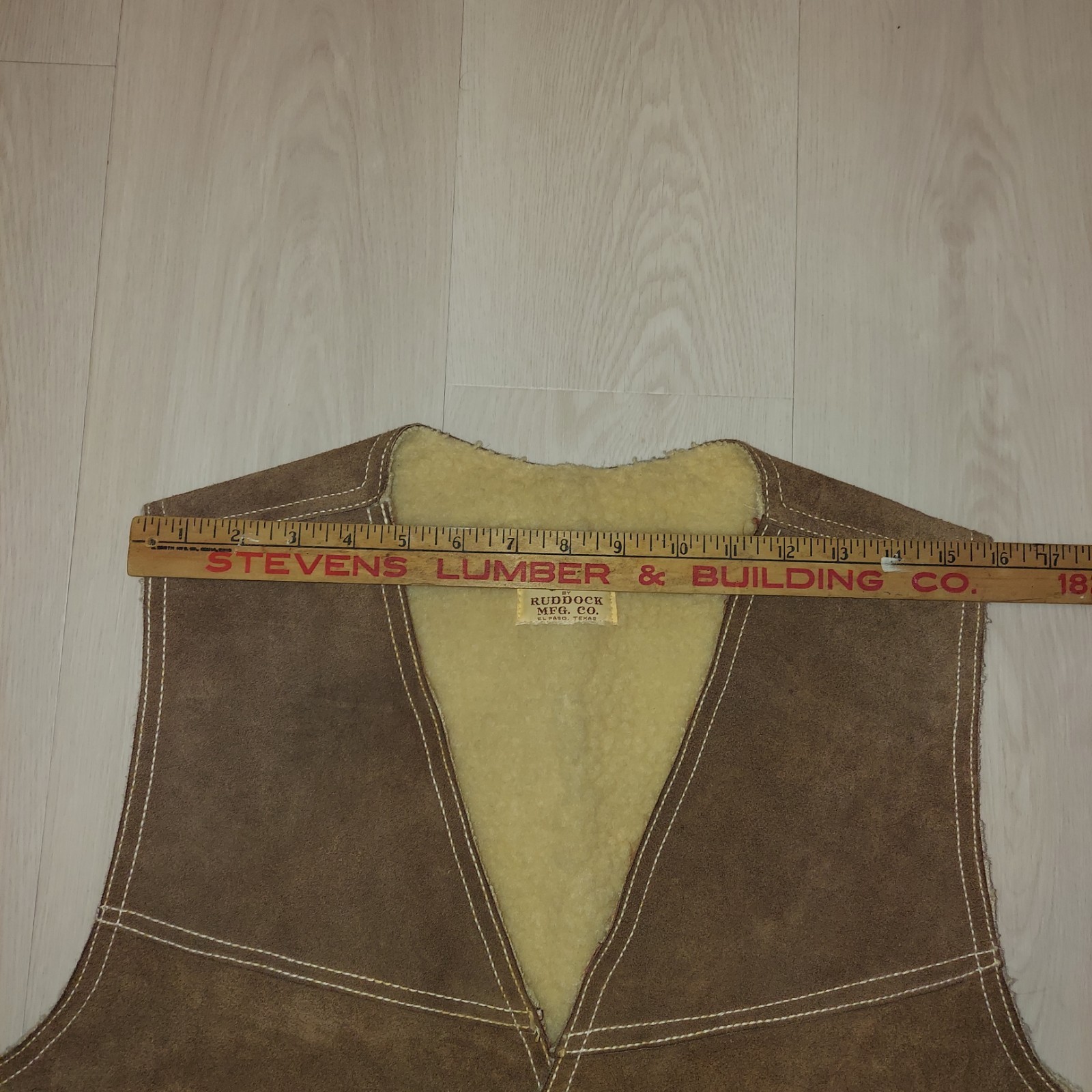как выглядит Vintage Ranchwear Brand Suede Leather Shearling lined Snap Up Vest Sz L фото