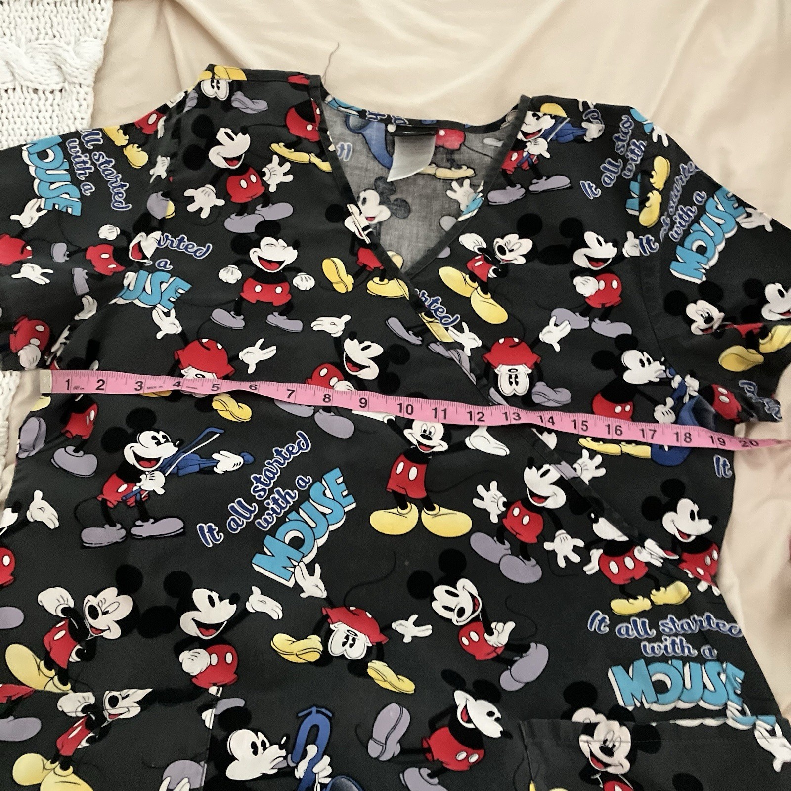 как выглядит Women s size medium Mickey Mouse it all started with a mouse scrub top фото