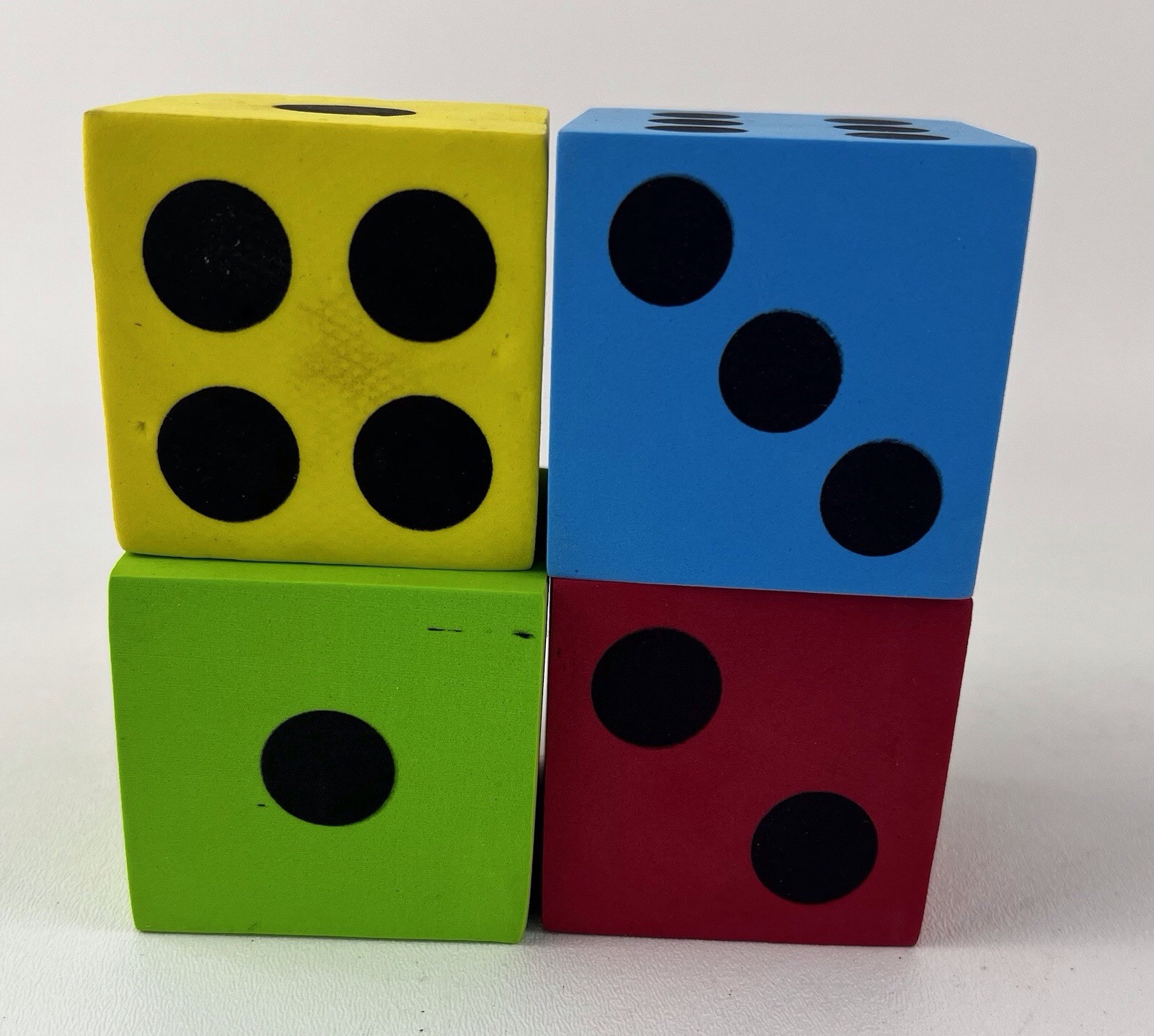 Large Foam Dice Pack of 4 Different Colors 1.5in With Black Dots