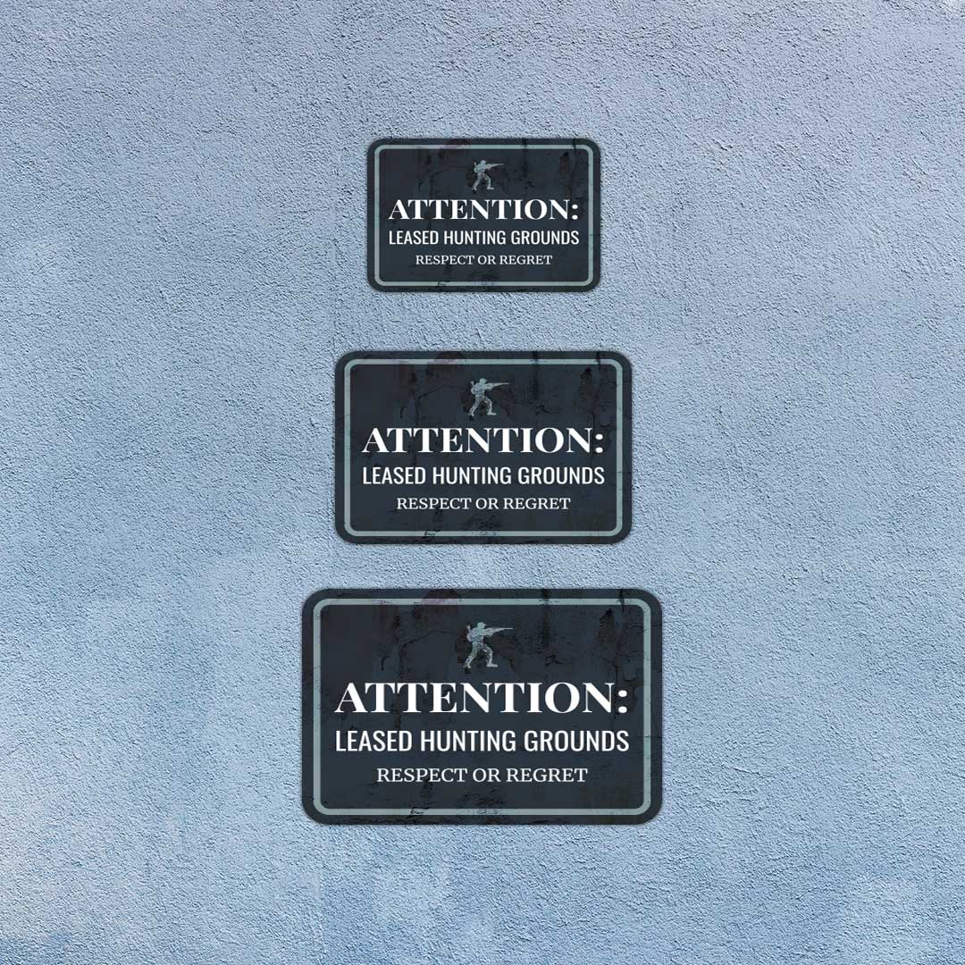 как выглядит Classic Framed Plus Attention: Leased Hunting Grounds  Respect or Regret Sign фото