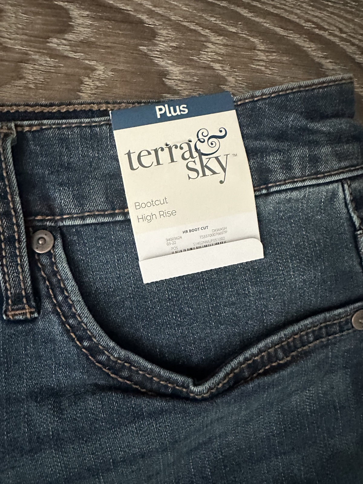 Terra Sky High Waisted Jeans Bootcut Dark Blue Wash Women's 16W Petite