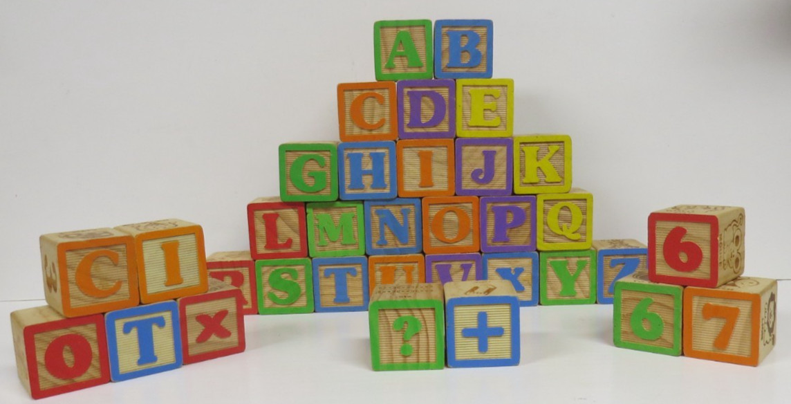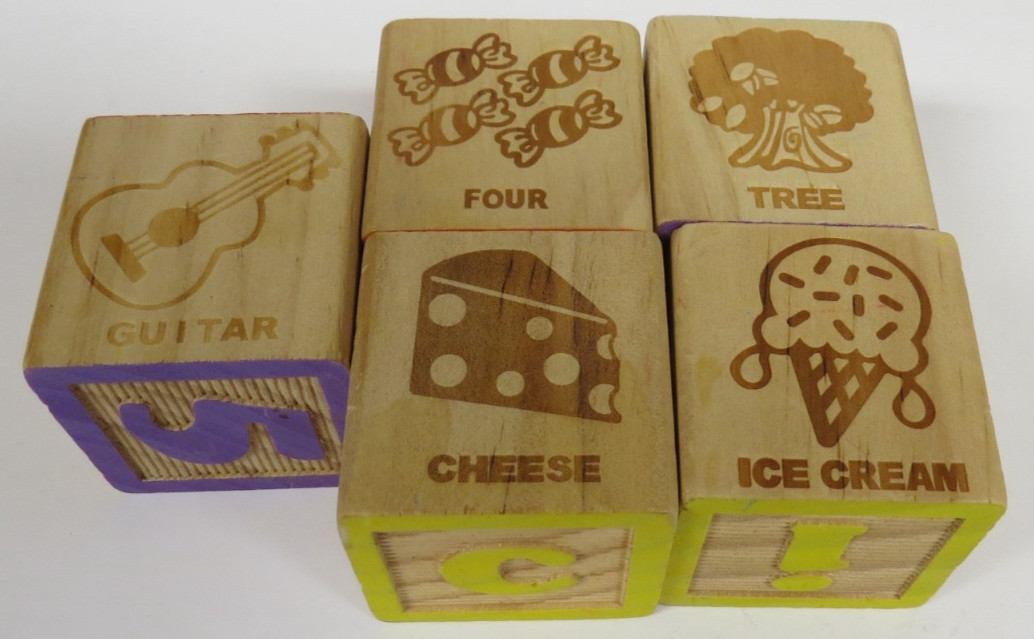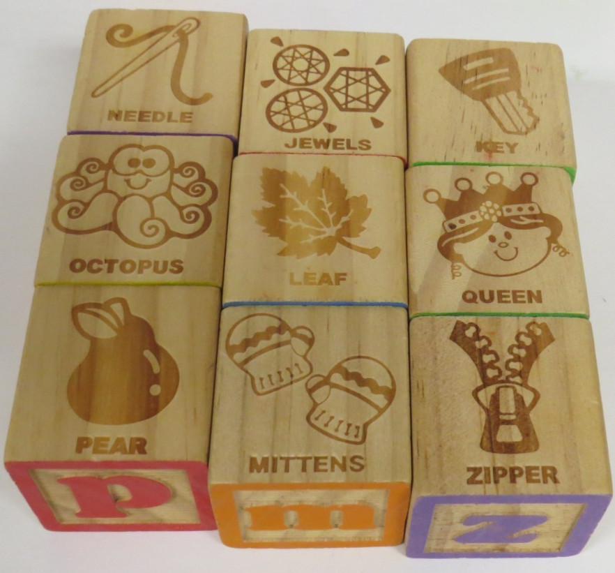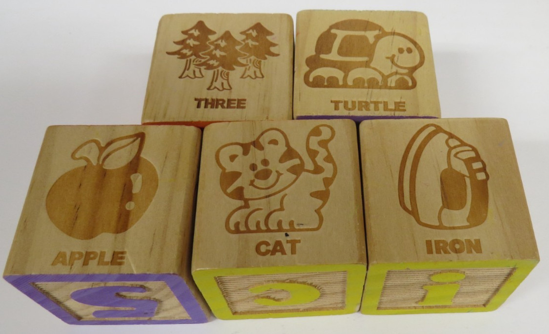 34 Children's Wooden Learning Blocks ABC Alphabet Numbers Animals Objects w/Bag