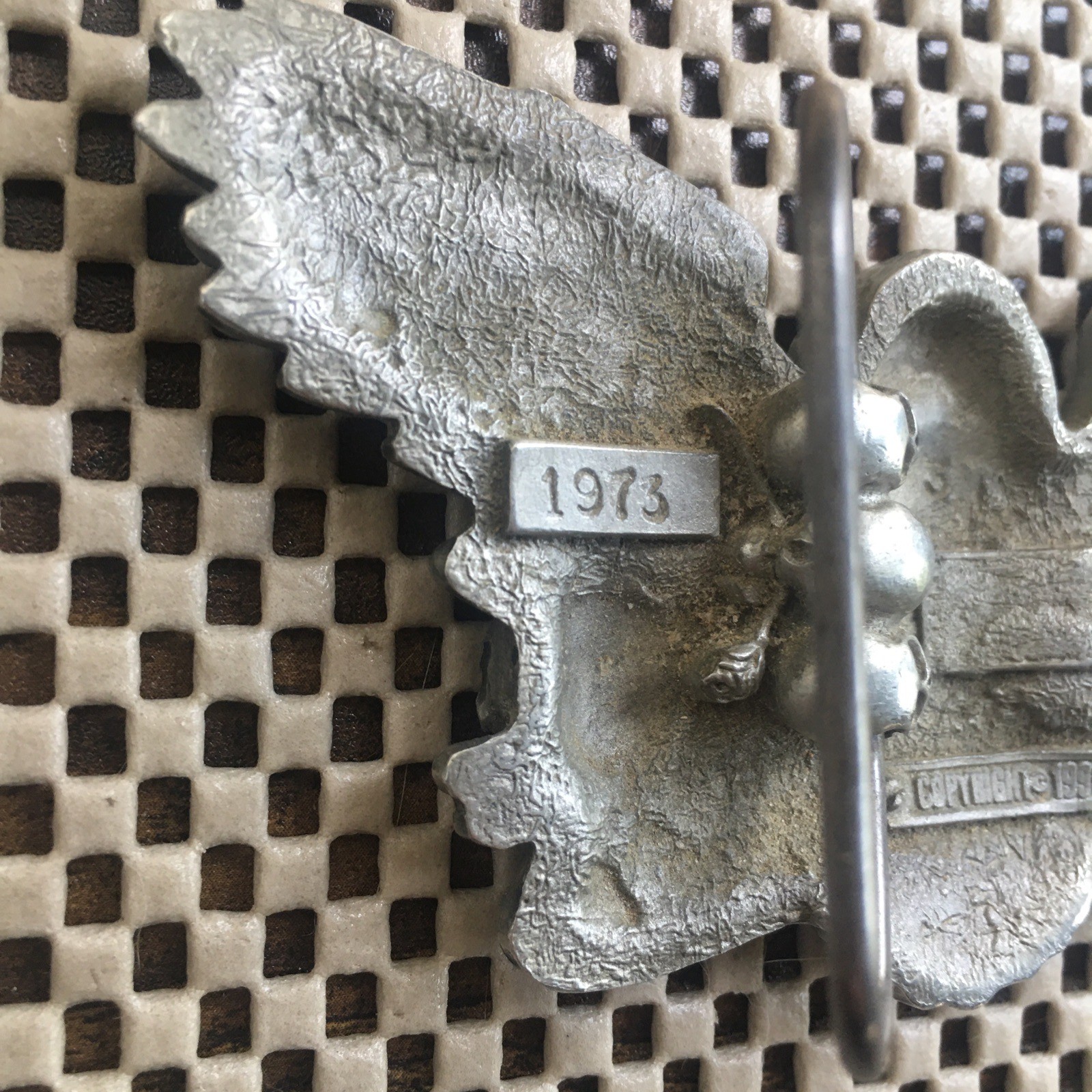 как выглядит Vintage GAP Belt Buckle BAD TO THE BONE-Skulls-Eagle 1973 Pewter 1991 фото