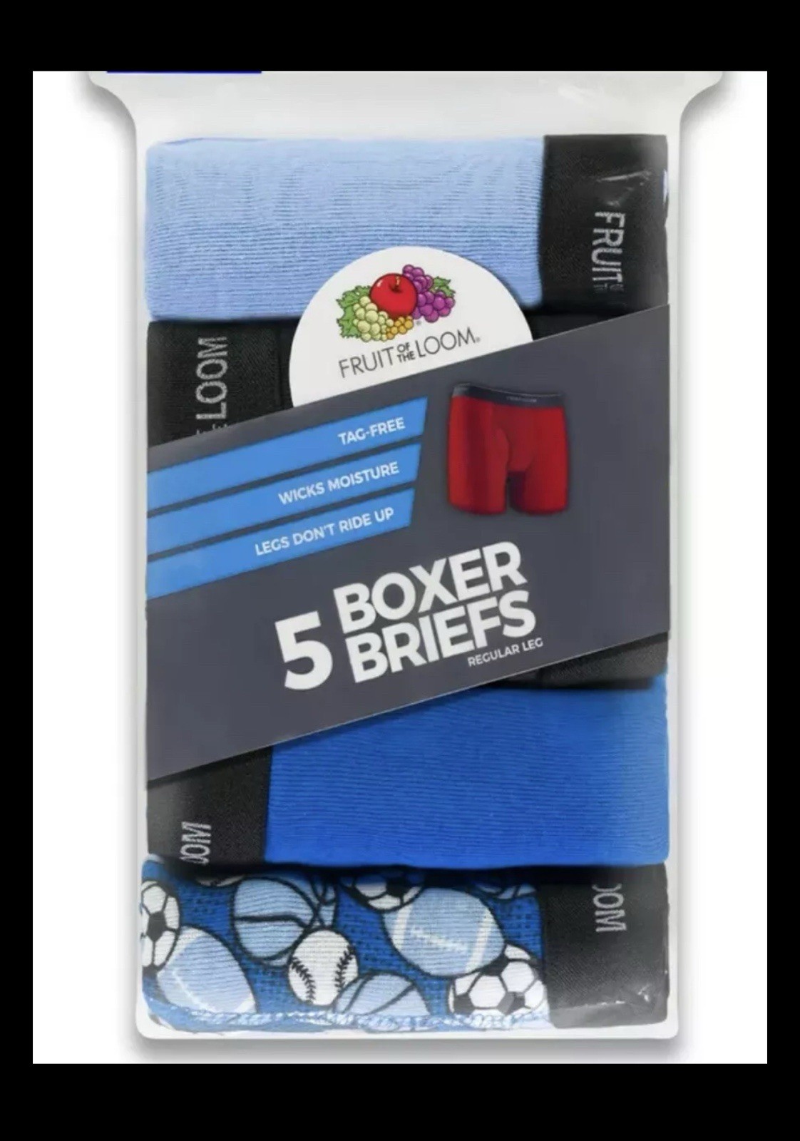 как выглядит Boys Fruit of the Loom Boxer Briefs 5 Pack Regular Leg - Size Large 14/16 фото