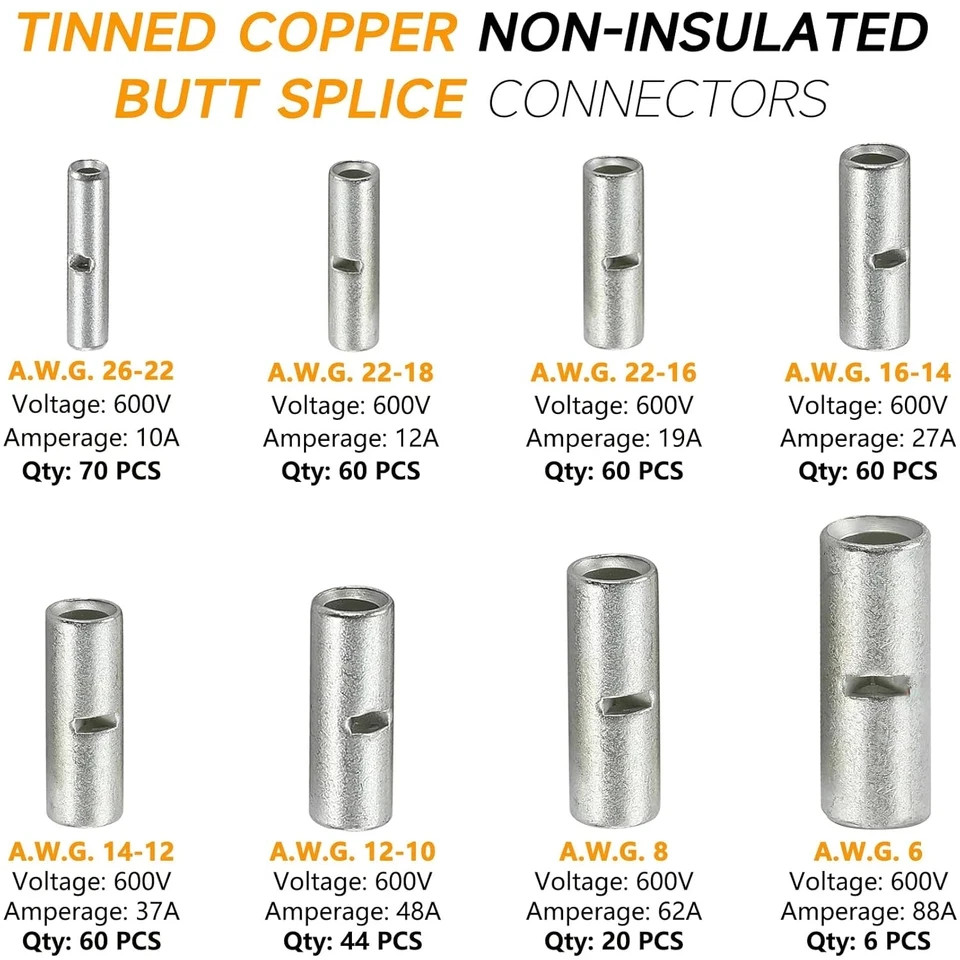 380PCS Non Insulated Butt Connectors Kit Butt Splice Connector Uninsulated Wire