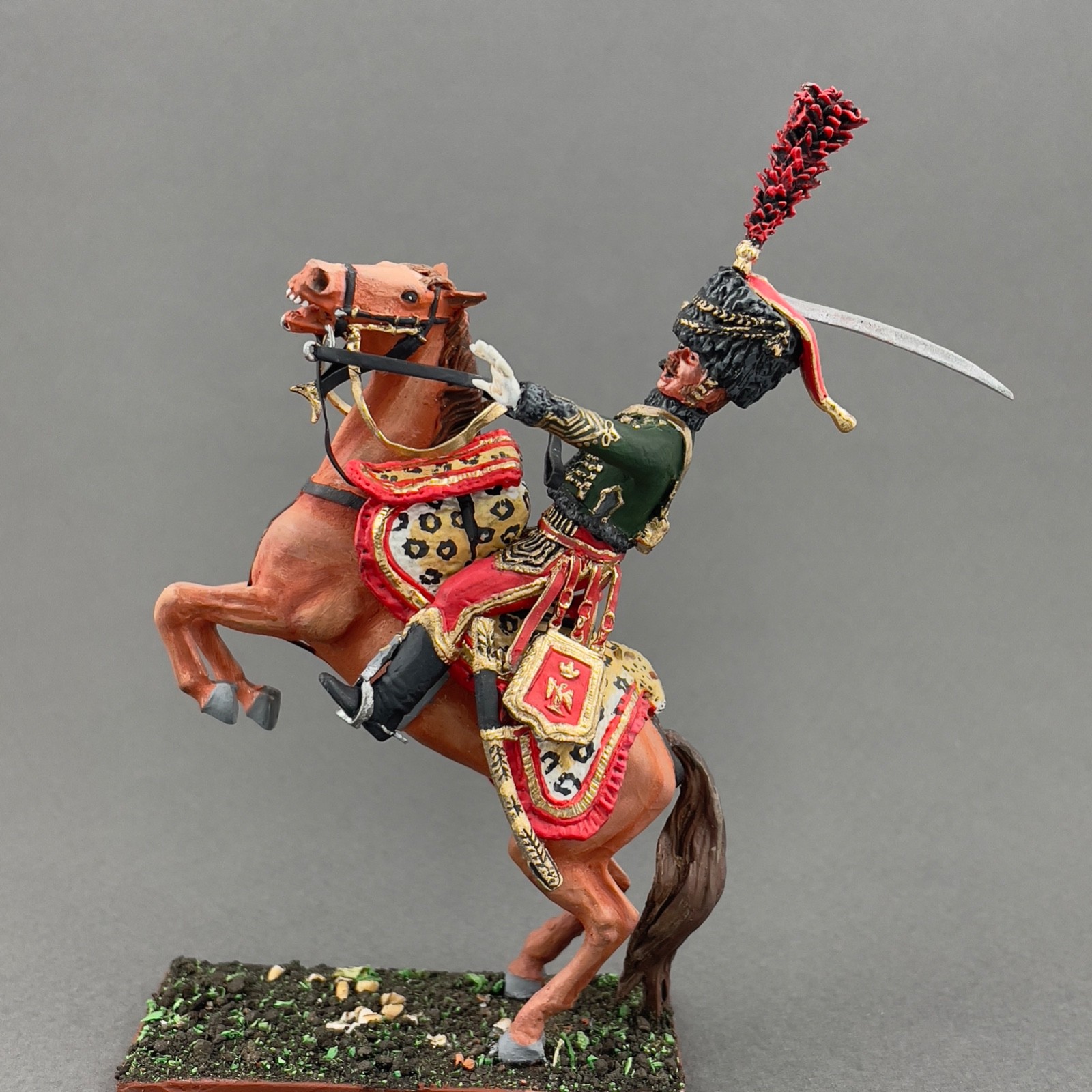 Painted French hussar figure 60 mm 1/30, Napoleonic metal miniature VID SOLDIERS